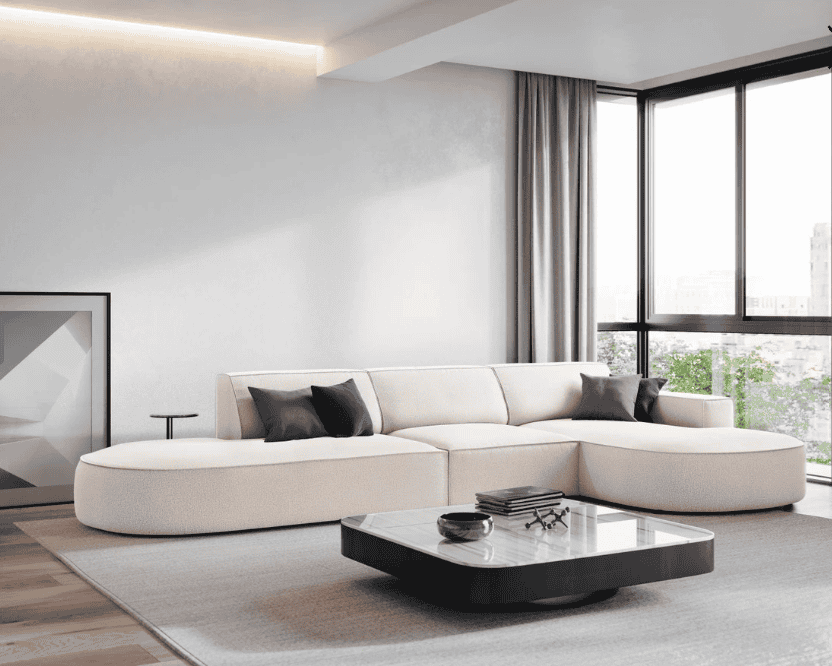 BLOCK rounded open corner 4 seater sofa 342x166cm in fabric, velvet or bouclé