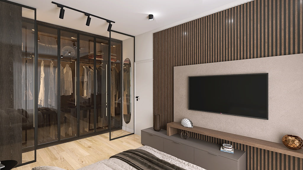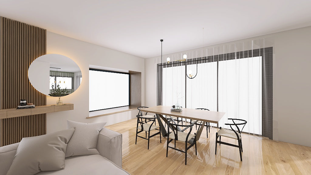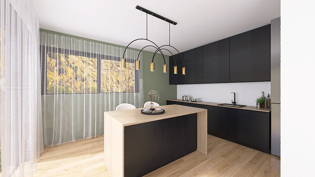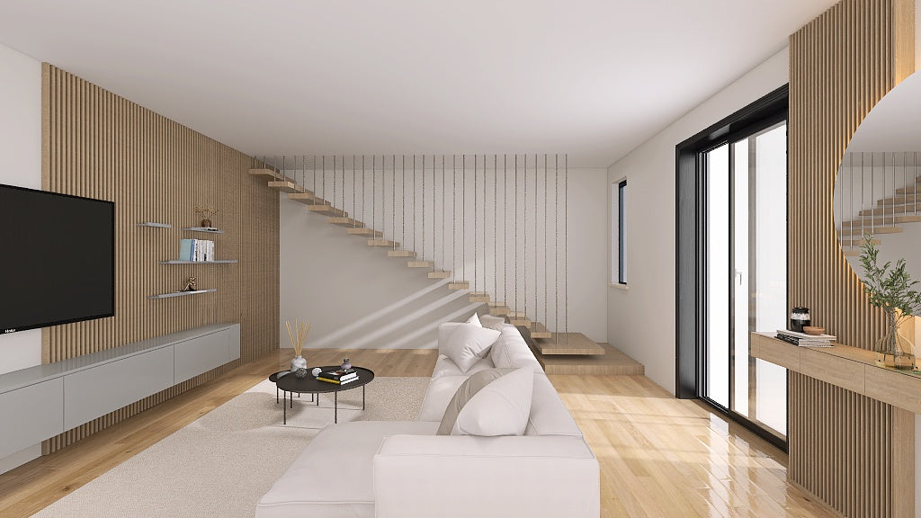Newly built two-level villa. The goal: a Nordic and modern style, with the use of oak and wood paneling, much loved by the customer.