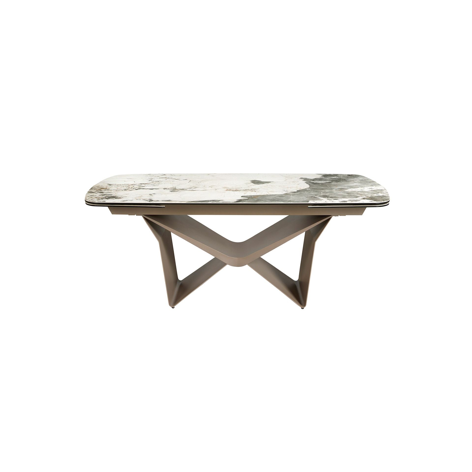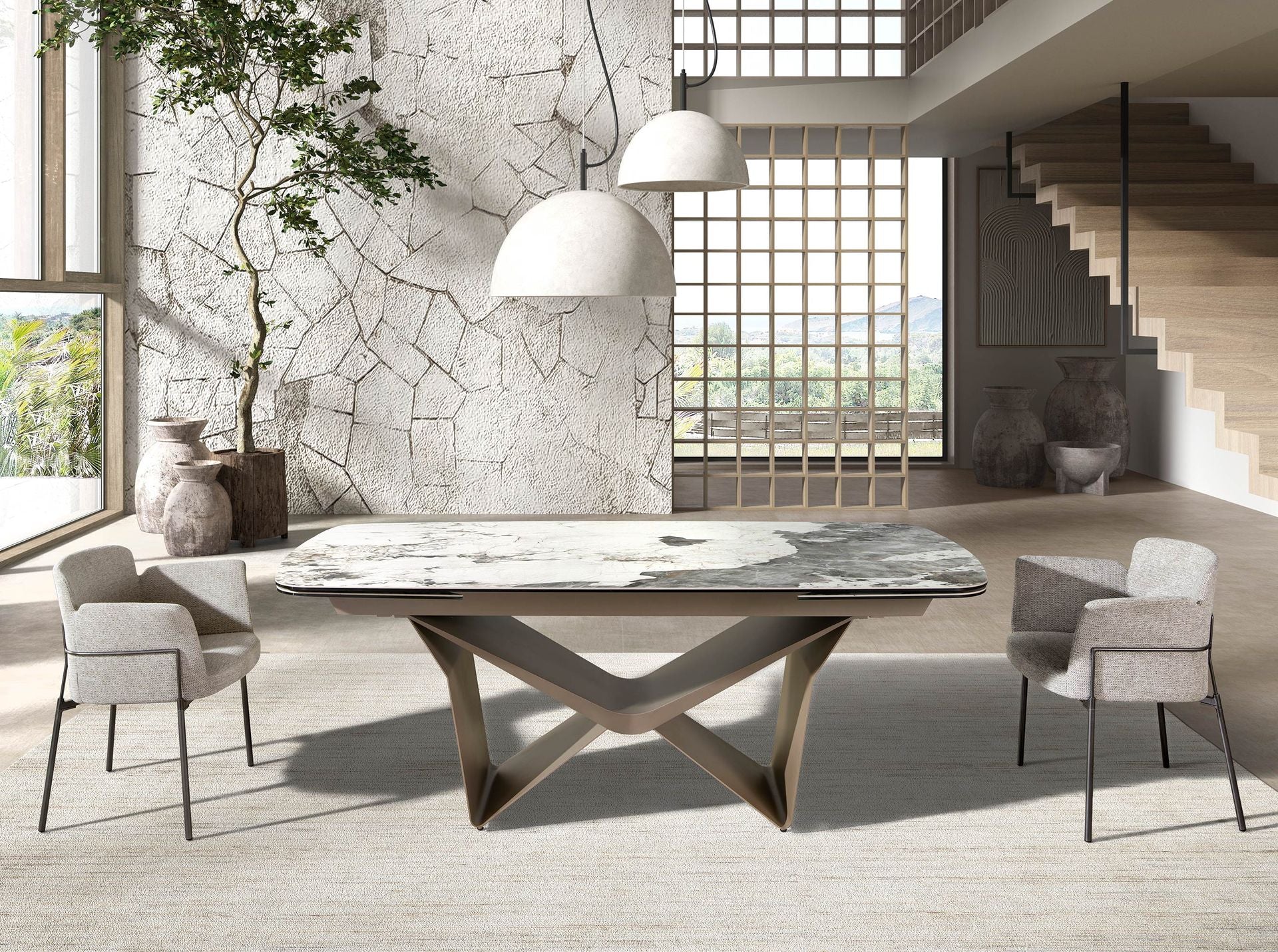 Tavolo da pranzo allungabile ovale a botte in marmo porcellanato e acciaio metallizzato taupe modelle 1154 Angel Cerdá S.L.