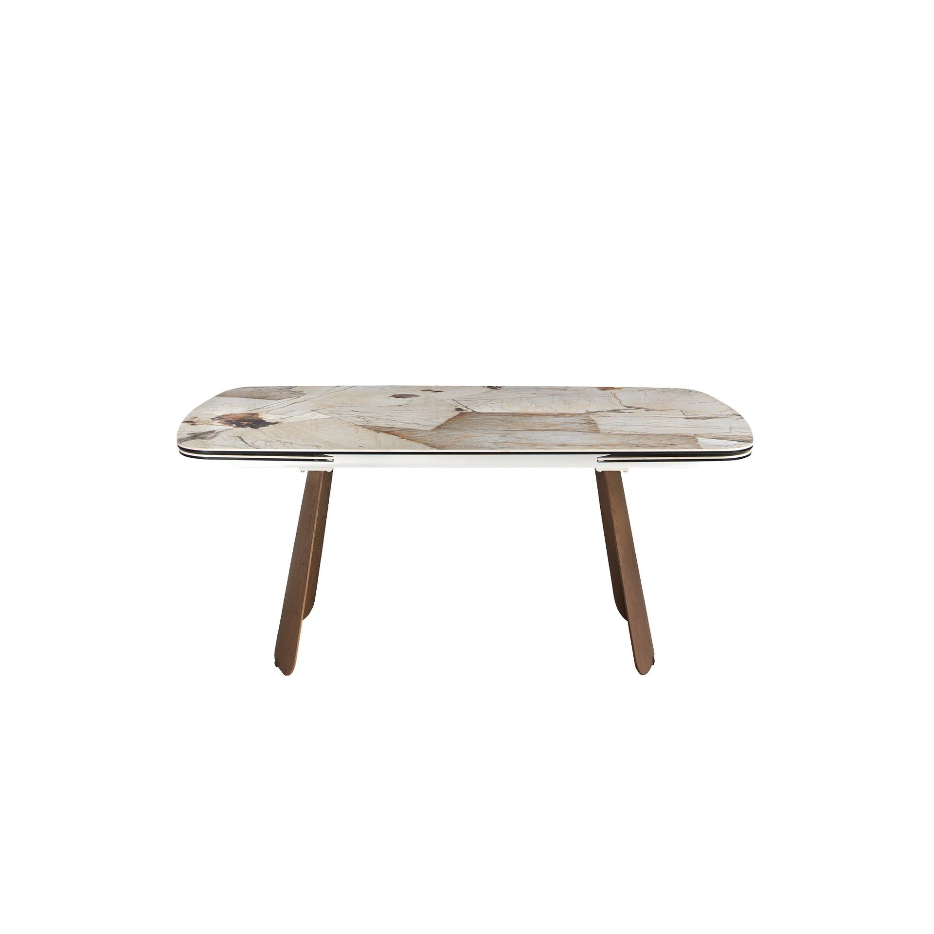 Tavolo da pranzo allungabile ovale a botte in marmo porcellanato e noce