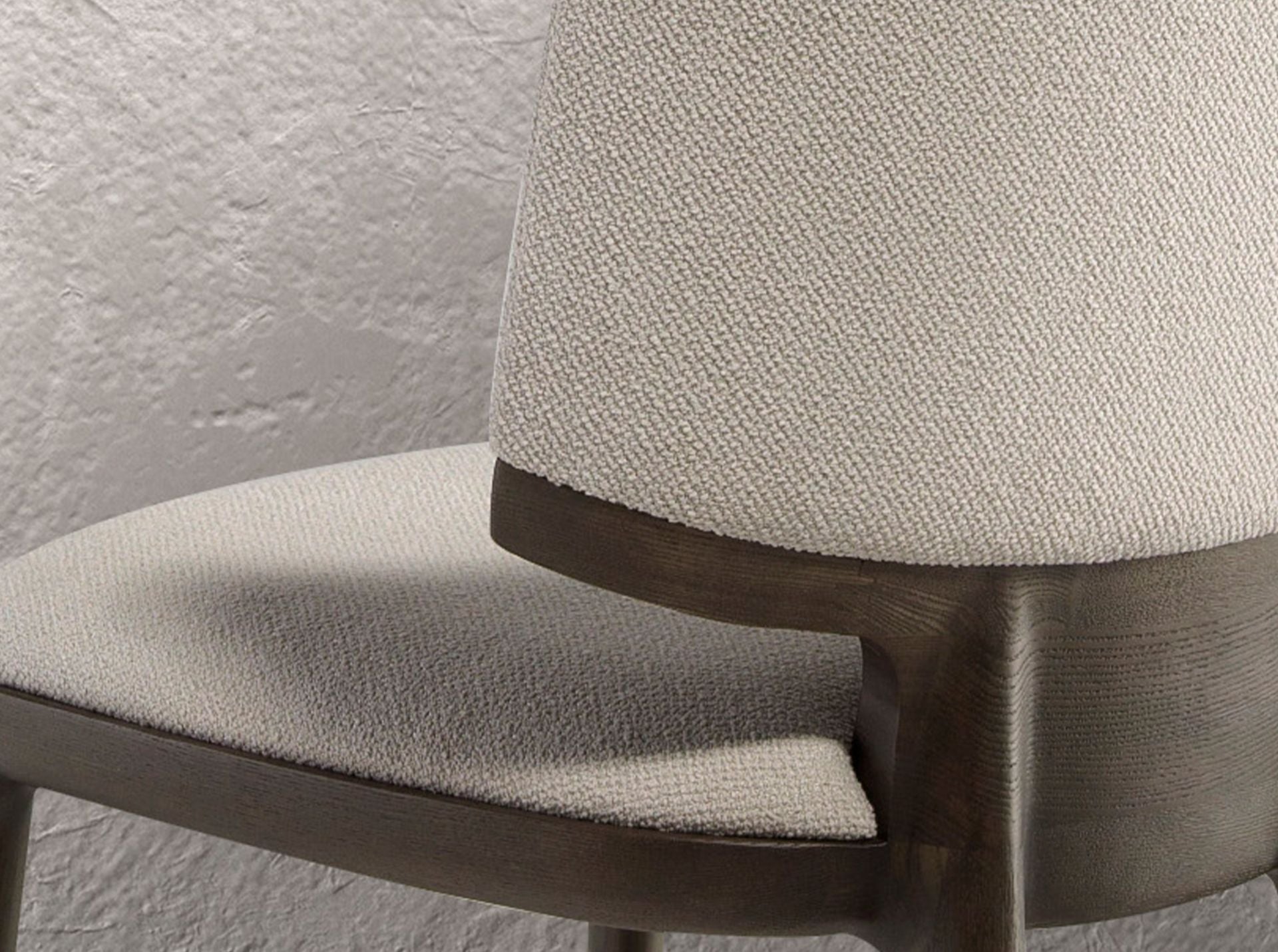 Sedia dal design moderno con seduta e schienale rivestiti in tessuto grigio chiaro. Le sue gambe in legno di quercia color cenere scuro, dallo stile avanguardista ma senza tempo, la renderanno un must per la vostra cucina o sala da pranzo. Questa sedia di Angel Cerdá unisce lo stile unico e personale del marchio al massimo comfort e stabilità, grazie all'alta qualità del rivestimento e alla struttura originale delle gambe.