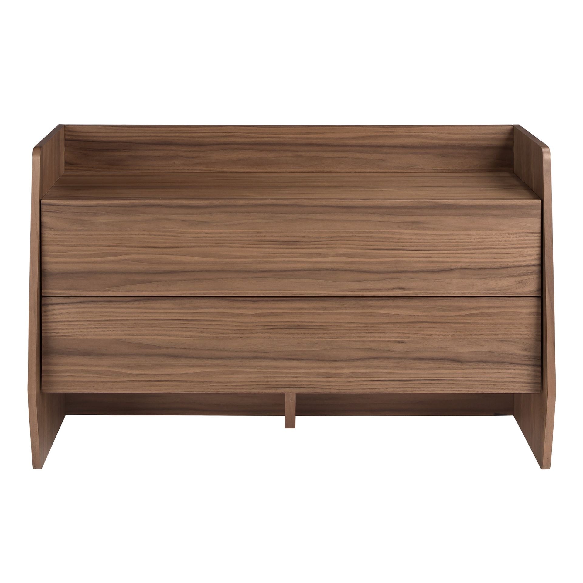 Cassettiera dal design moderno con struttura in legno impiallacciato in noce naturale e originali gambe in legno impiallacciato in noce naturale. Dispone di un ampio spazio di archiviazione con 2 cassetti con apertura estraibile maniglia a uncino e chiusura ammortizzata.
