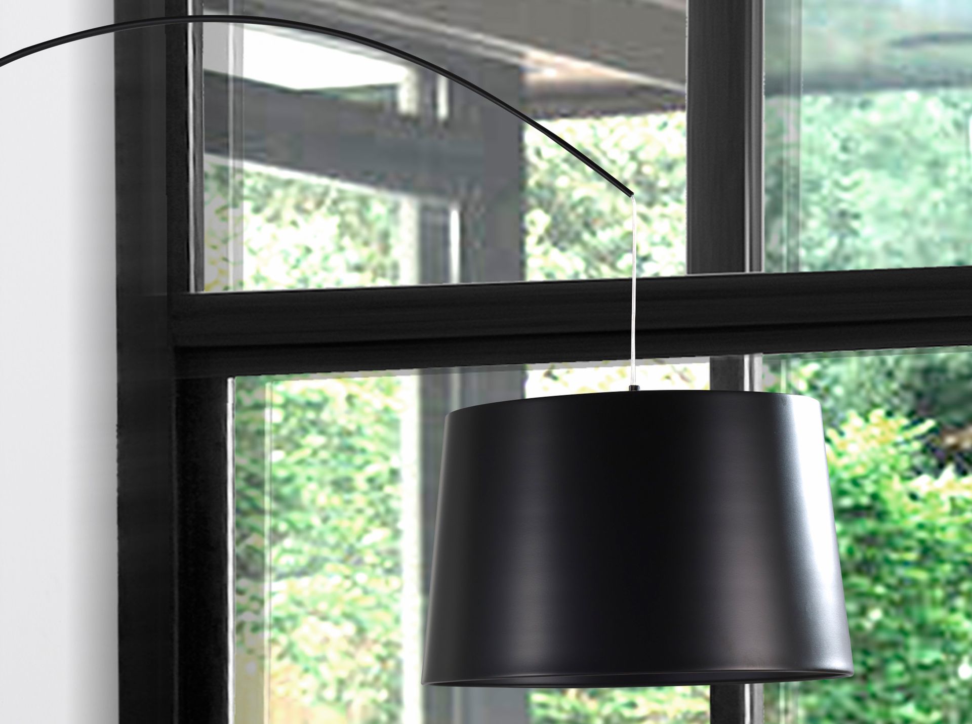 Lampada da terra ad arco in acciaio inox nero opaco, regolabile in altezza.