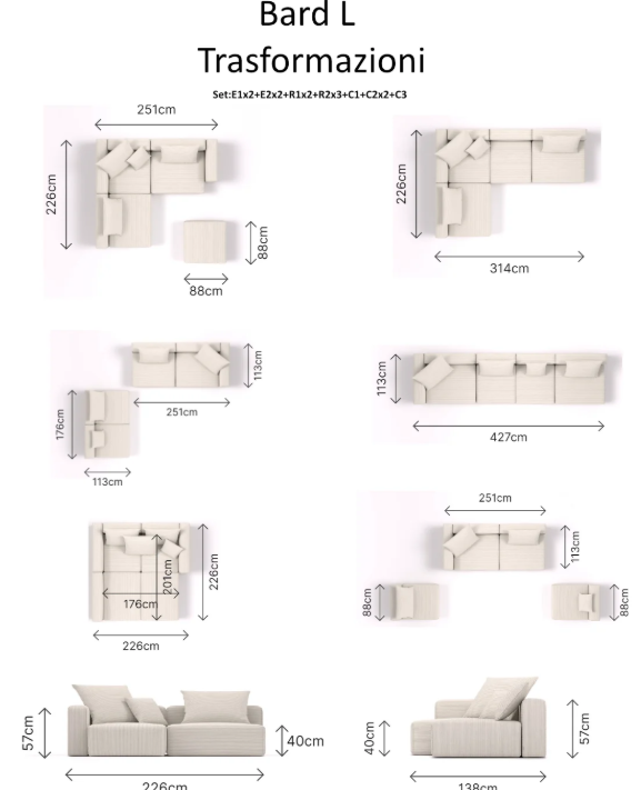 Divano modulare Bard L- sfoderabile e trasformabile in letto