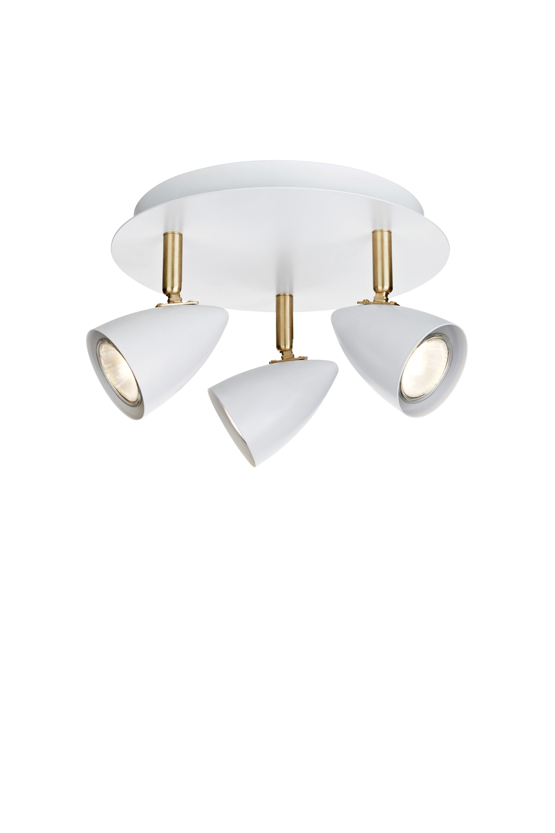 Faretto da soffitto Ciro in metallo di Markslöjd. Portalampada GU10 per max. Alogena da 35W o equivalente a LED. Sorgente luminosa non inclusa. Collegamento a terra con staffa a soffitto.