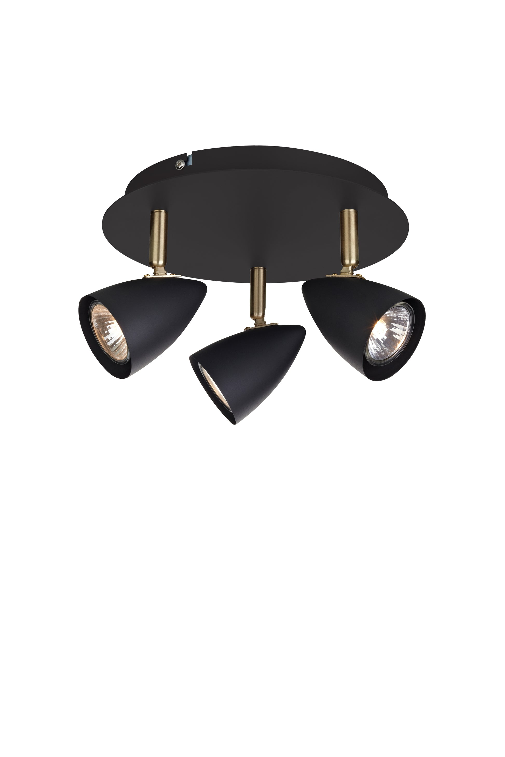 Faretto da soffitto Ciro in metallo di Markslöjd. Portalampada GU10 per max. Alogena da 35W o equivalente a LED. Sorgente luminosa non inclusa. Collegamento a terra con staffa a soffitto.
