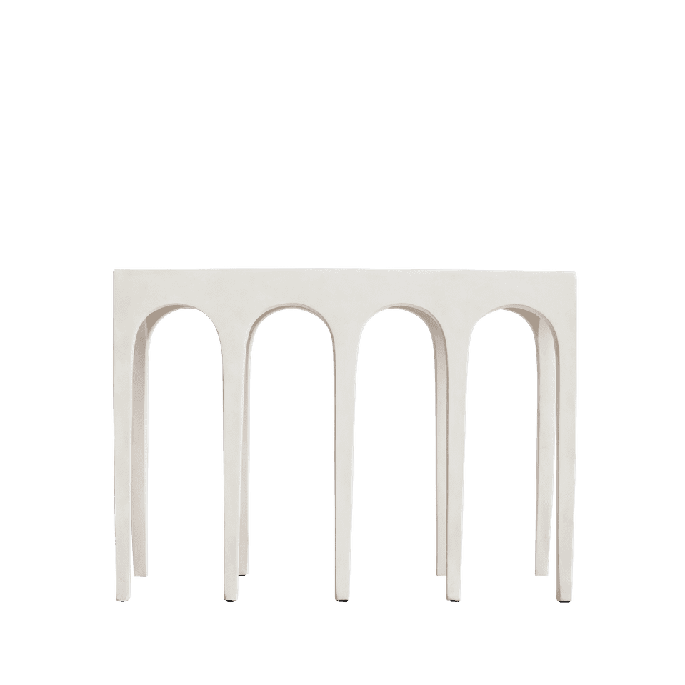 La serie Bow è un esempio di design senza tempo, che ricorda la grandiosità architettonica degli antichi acquedotti romani e la precisione geometrica classica. Con la sua sequenza di archi, questa collezione offre una silhouette elegante e sofisticata, al tempo stesso sobria e imponente. Le gambe allungate conferiscono un'aria di eleganza e leggerezza, contrastando la presenza imponente di questi pezzi. Realizzata in fibrocemento leggero, la serie Bow non solo presenta una superficie dalla texture distintiva, ma vanta anche una maggiore portabilità. Ogni pezzo è meticolosamente dipinto a mano con più strati, garantendo una finitura resistente e durevole, costruita per durare. Questa collezione comprende due dimensioni di tavoli consolle e una panca, offrendo opzioni versatili che si integrano perfettamente con qualsiasi spazio interno. Concepita dalle menti visionarie di Kristian Sofus Hansen e Tommy Hyldahl, la serie Bow è un'armoniosa combinazione di forma e funzione, consolidando il suo status di straordinaria aggiunta al design contemporaneo. Progettata da Kristian Sofus Hansen e Tommy Hyldahl.