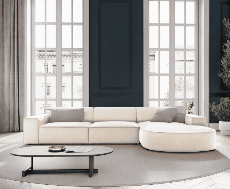 BLOCK rounded sofa 4 seats 284x166cm in fabric, velvet or bouclé