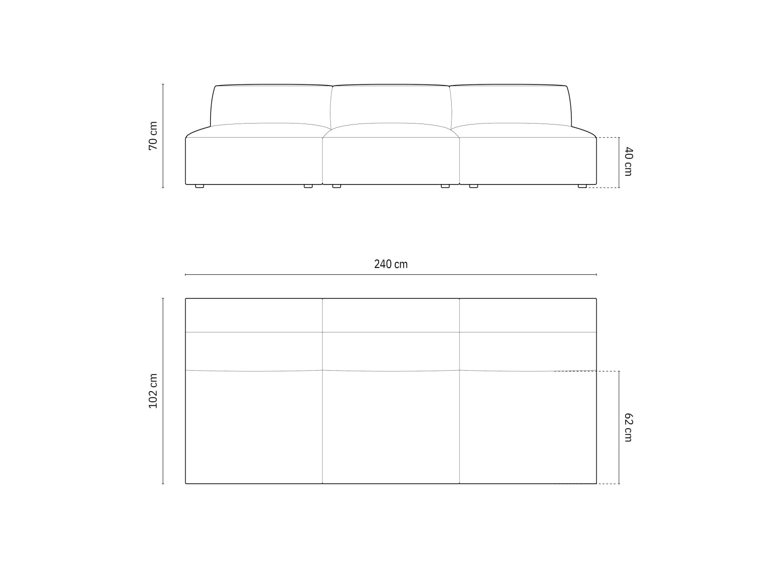 Divano, "Jodie", 3 posti, 240x102x70
