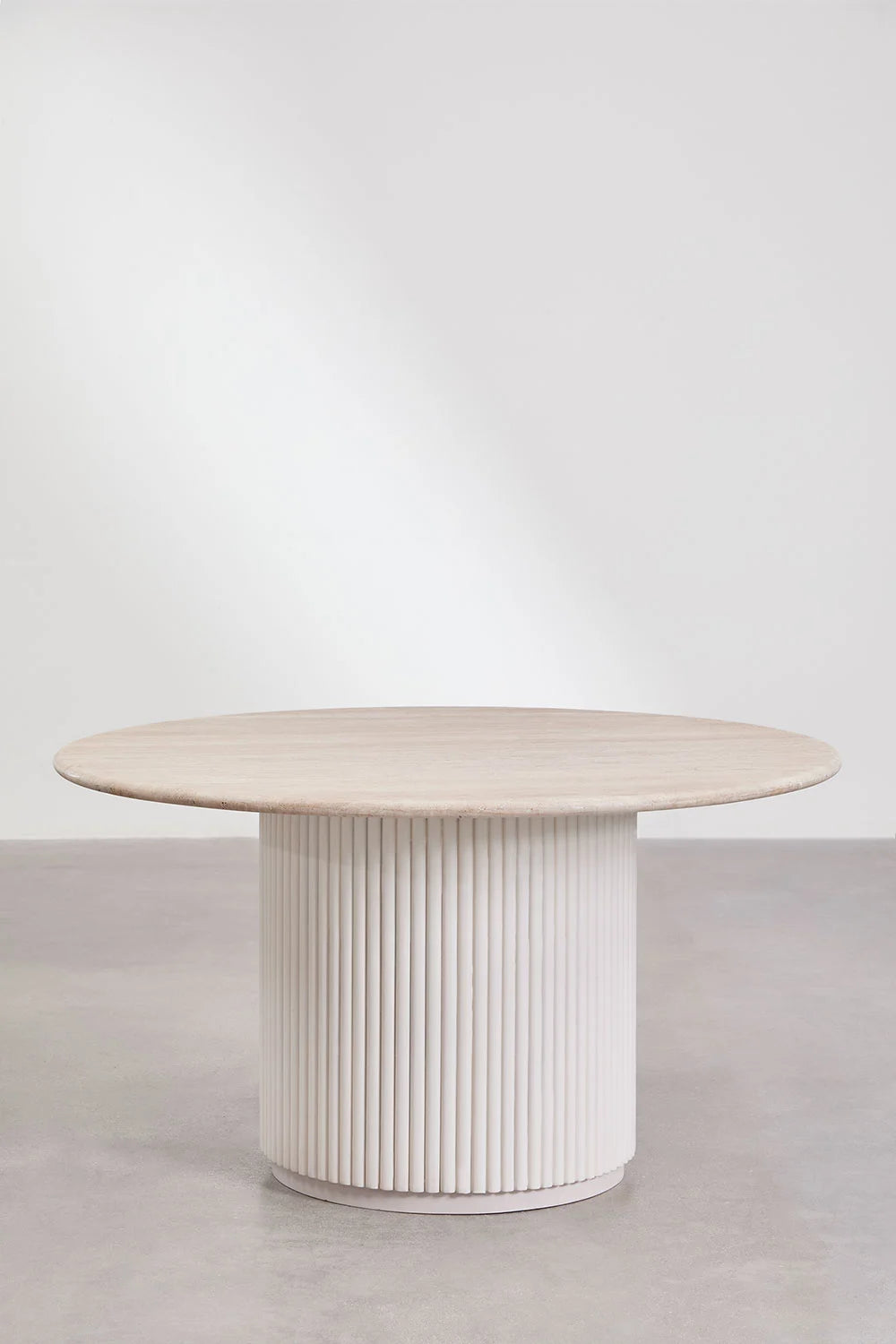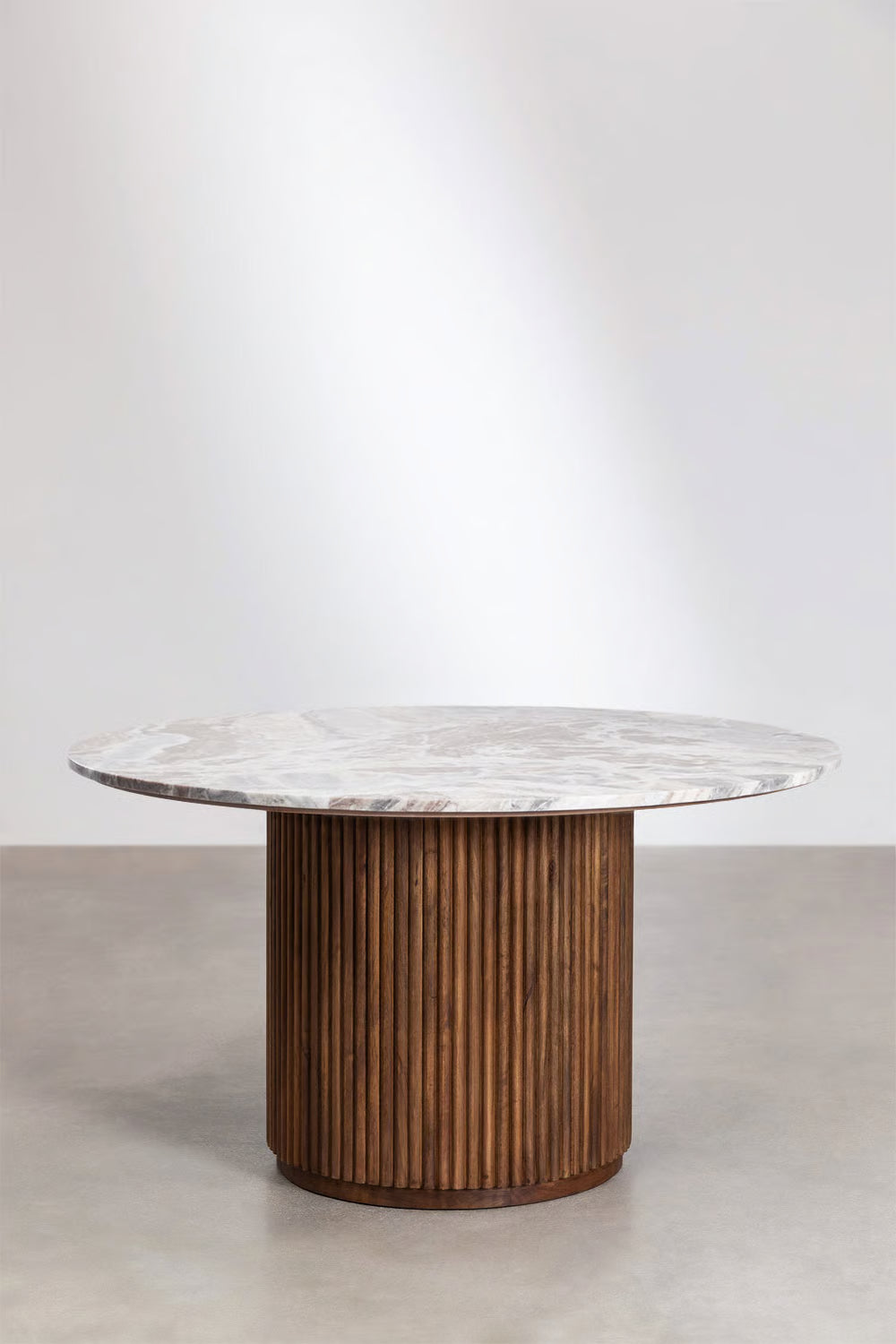 Giselda - Tavolo da pranzo rotondo in pietra naturale e legno di mango Ø100 Ø120 Ø140