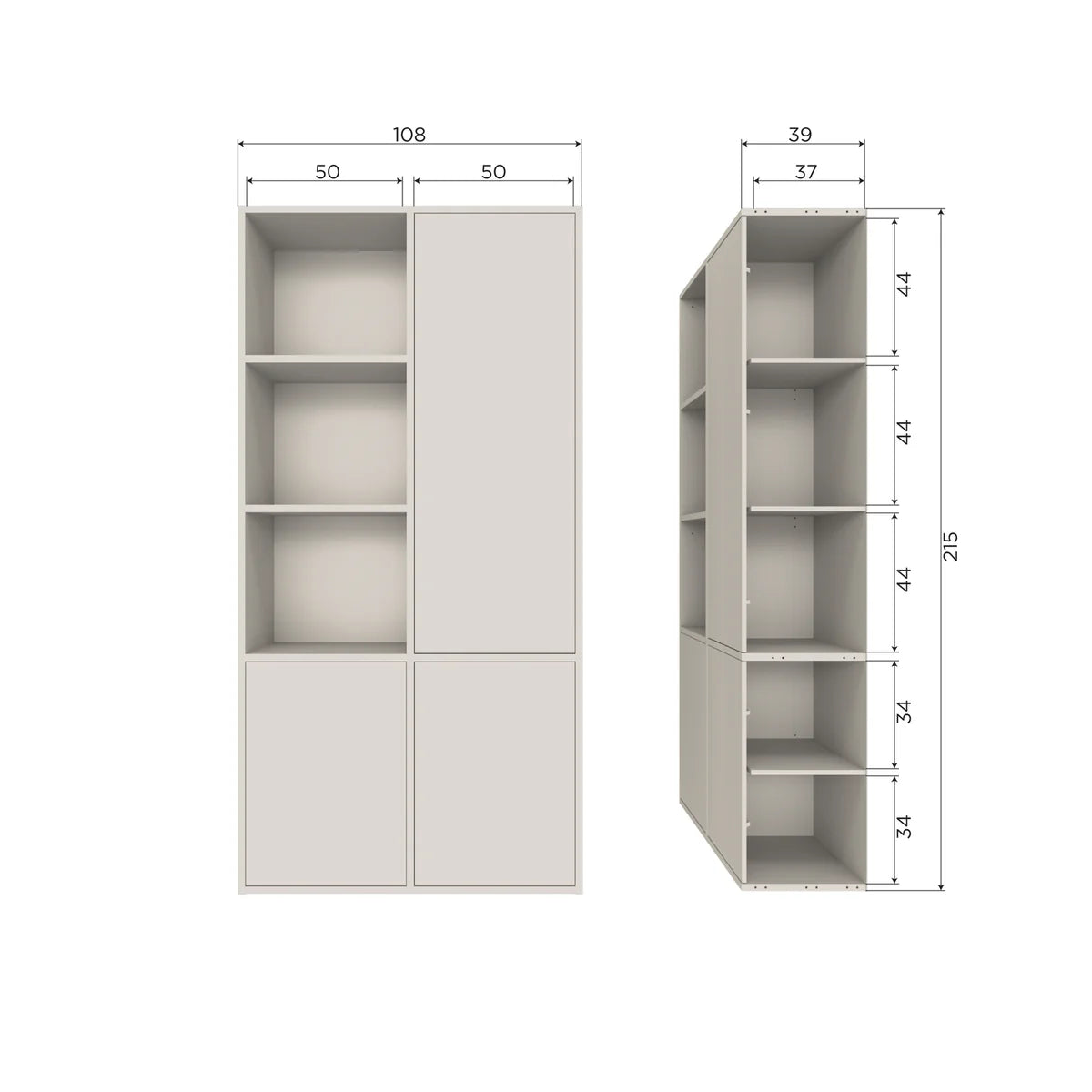 Sul lato sinistro sono presenti due vani a giorno, perfetti per libri, accessori e oggetti decorativi. Sul lato destro invece, un’anta a tutta altezza permette di riporre con discrezione ciò che non vuoi lasciare in vista, mantenendo il tuo soggiorno ordinato ed elegante.