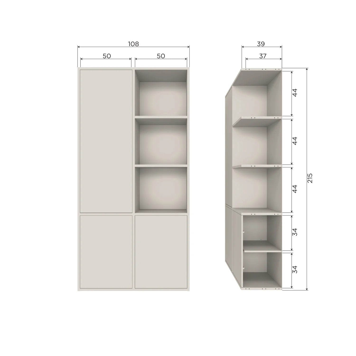 Sul lato sinistro sono presenti due vani a giorno, perfetti per libri, accessori e oggetti decorativi. Sul lato sinistro invece, un’anta a tutta altezza permette di riporre con discrezione ciò che non vuoi lasciare in vista, mantenendo il tuo soggiorno ordinato ed elegante.