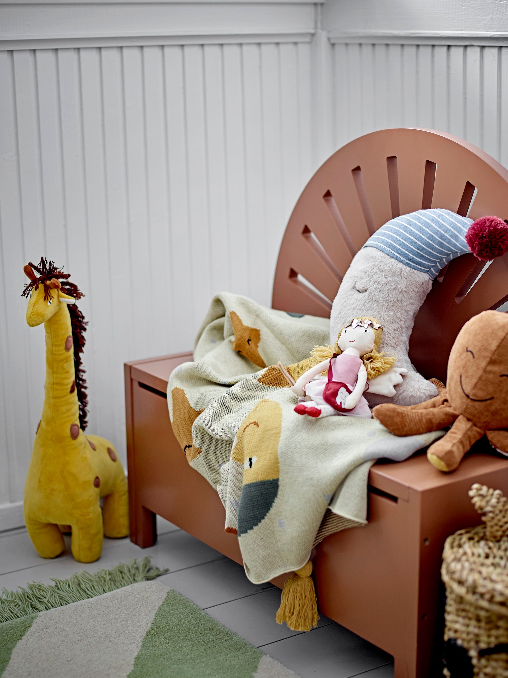 La panca Marisol di Bloomingville MINI è una deliziosa miscela di funzionalità ed estetica. Ispirata ai raggi del sole, la panca si presenta in una bellissima tonalità marrone profonda, che apporta calore e carattere a qualsiasi stanza. È dotato di un meccanismo di chiusura ammortizzata, che assicura che il vano portaoggetti sotto il sedile si chiuda delicatamente, rendendolo perfetto per riporre giocattoli e animali di peluche. Con il suo design raffinato la panca risalta sia nella cameretta dei bambini che nel soggiorno.
