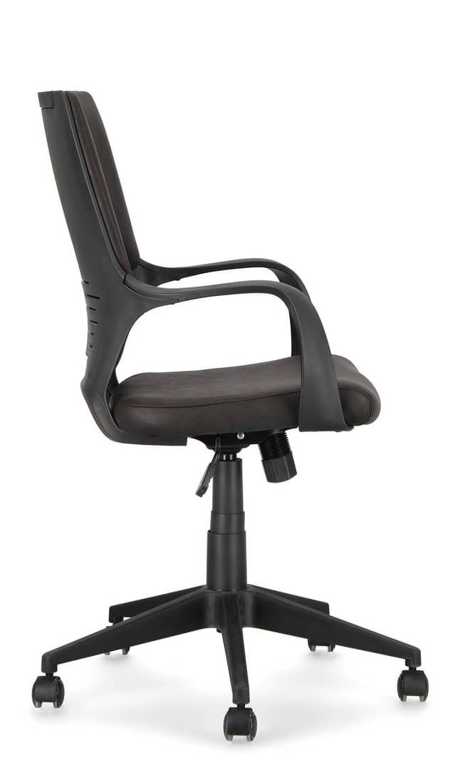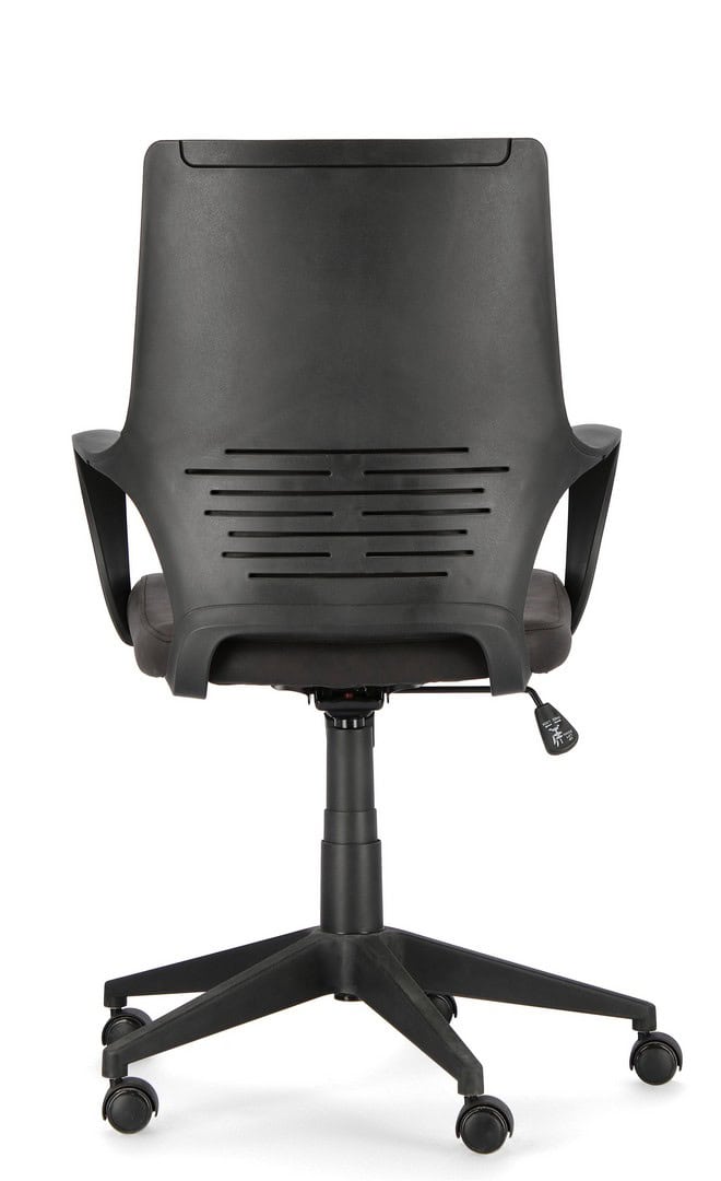 nylon base ø65 cm. pu wheels. polyurethane foam padding density 24 kg/m3. 100% polyester fabric covering. plastic (pp) shell and armrests. butterfly mechanism: height adjustment and seat oscillation. max load capacity: 120 kg. to be assembled.