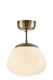 Lampada da soffitto Rise di Markslöjd. Base in ottone anticato e paralume in vetro bianco. Montaggio con gancio a soffitto. 1xE27, massimo 40W. Sorgente luminosa non inclusa. Design Monika Mulder