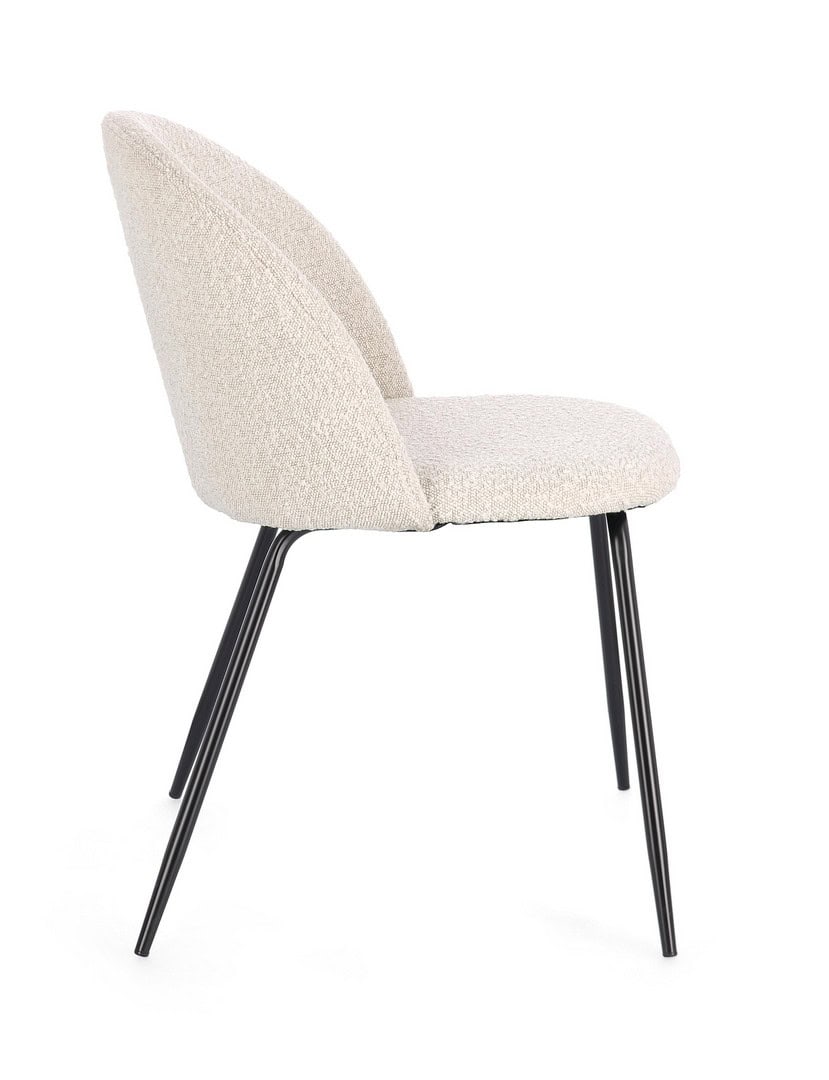 \legs in tubular steel with black chrome plating. backrest and seat padded with polyurethane foam and covered in 95% polyester 5% acrylic with a boucle' effect. legs to be assembled.