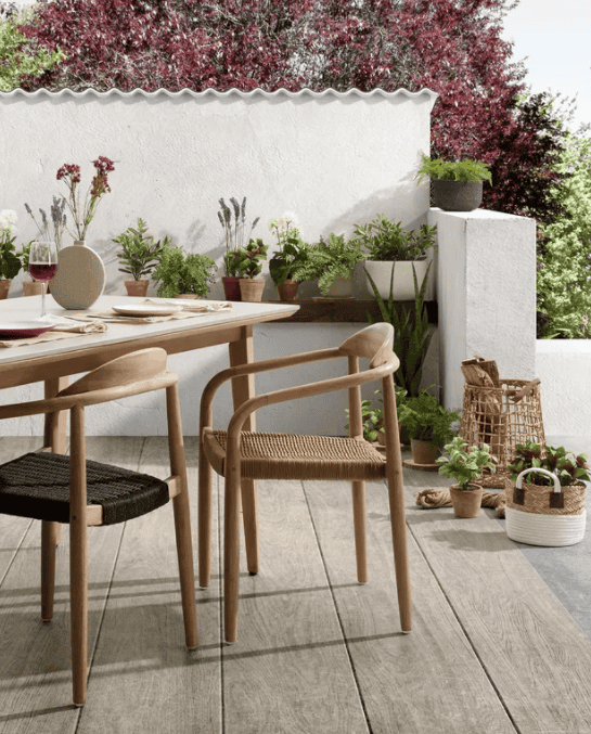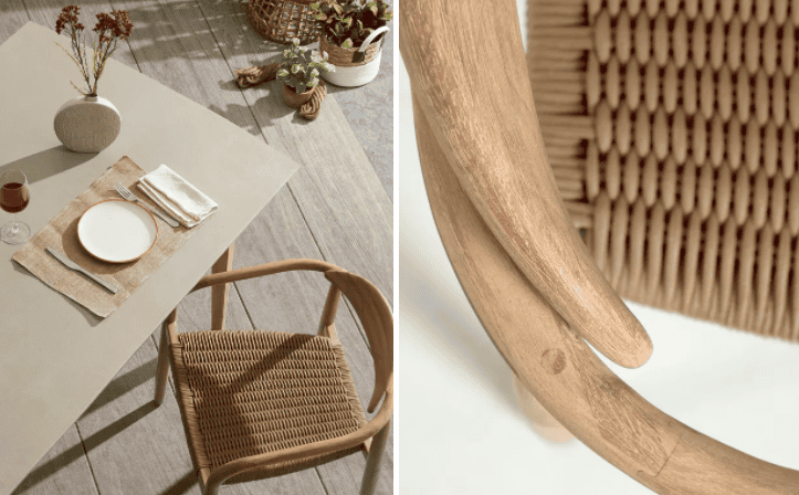 The Nina chair is a design with a solid acacia wood frame and a hand-woven seat. In addition, the materials are eco-friendly and treated to be used in covered outdoor spaces. Enjoy a unique piece.