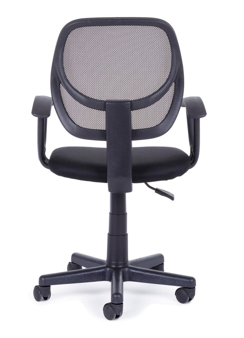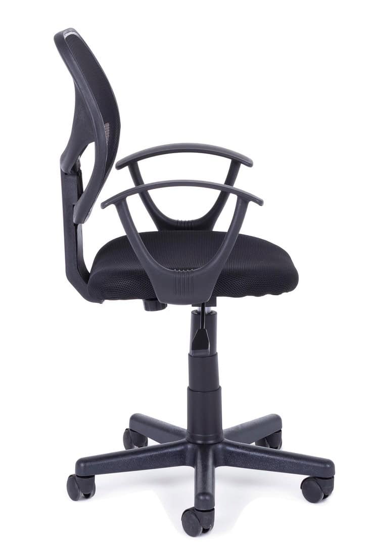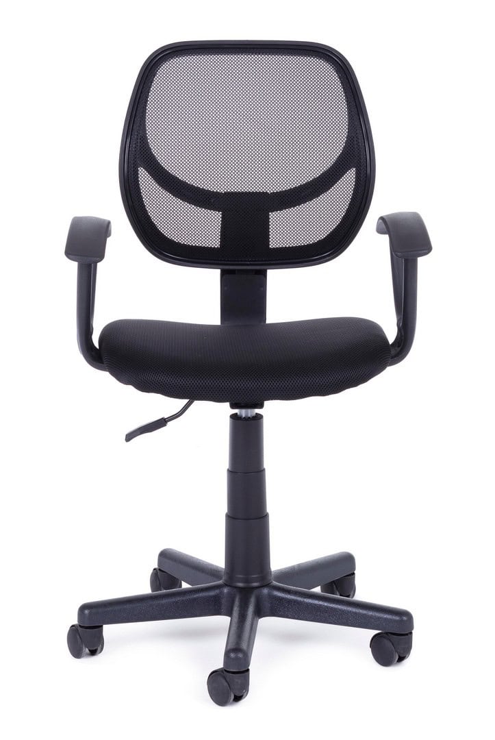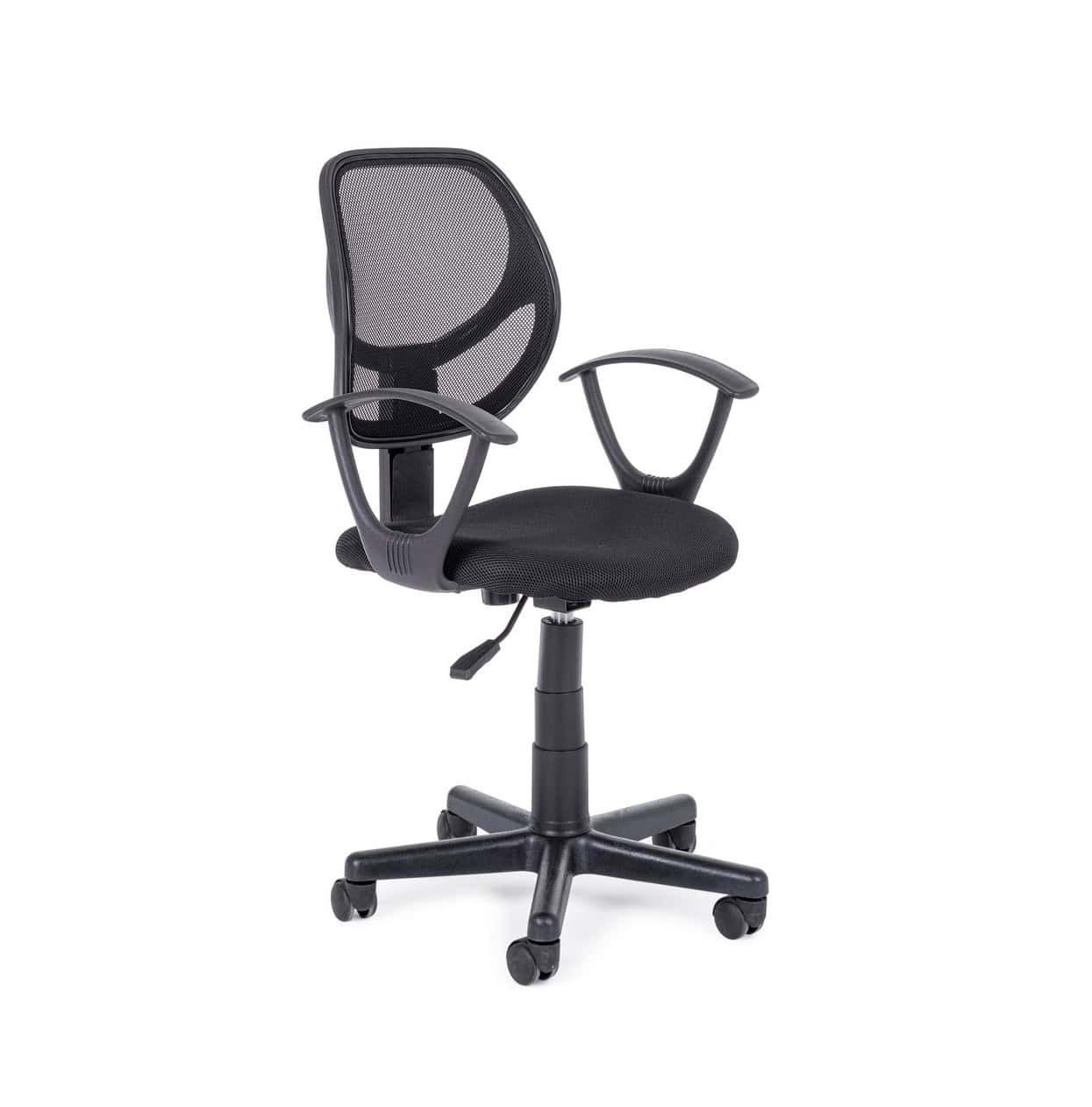 nylon base ø53 cm. nylon wheels. seat padded with foam and covered in mesh fabric. backrest covered in mesh fabric. plastic armrest (pp). adjustable height. to be assembled.