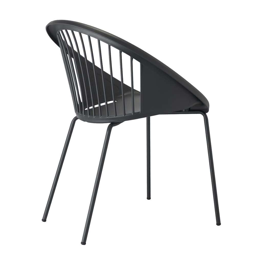 Armchair in metal and technopolymer, stackable, also for the garden.Modern chair with rounded shapes, perfect for those who want to furnish outdoor spaces with a touch of design.The shell is made of technopolymer in various colors. The four-legged structure in tubular steel (diameter section 16 mm) is available galvanized and painted with polyester powder.There are numerous possible combinations: