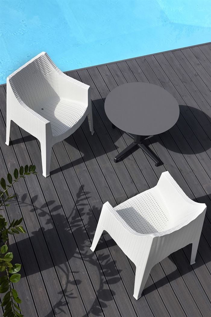Technopolymer armchair, stackable, also for the garden.This modern armchair with a wide and enveloping seat offers moments of relaxation. Guaranteed for outdoor use, it is also perfect for furnishing the garden and veranda.Maxima is made entirely of woven technopolymer reinforced with glass fiber, available in different colors.This made in Italy chair can be stacked up to 12 pieces when not in use. The four non-slip feet add stability to the garden chair.Dimensions: