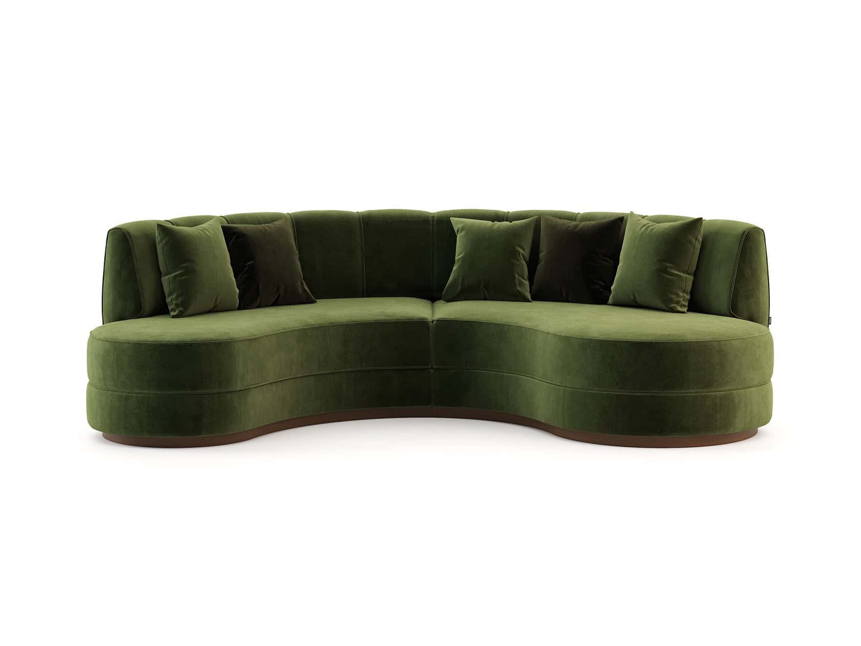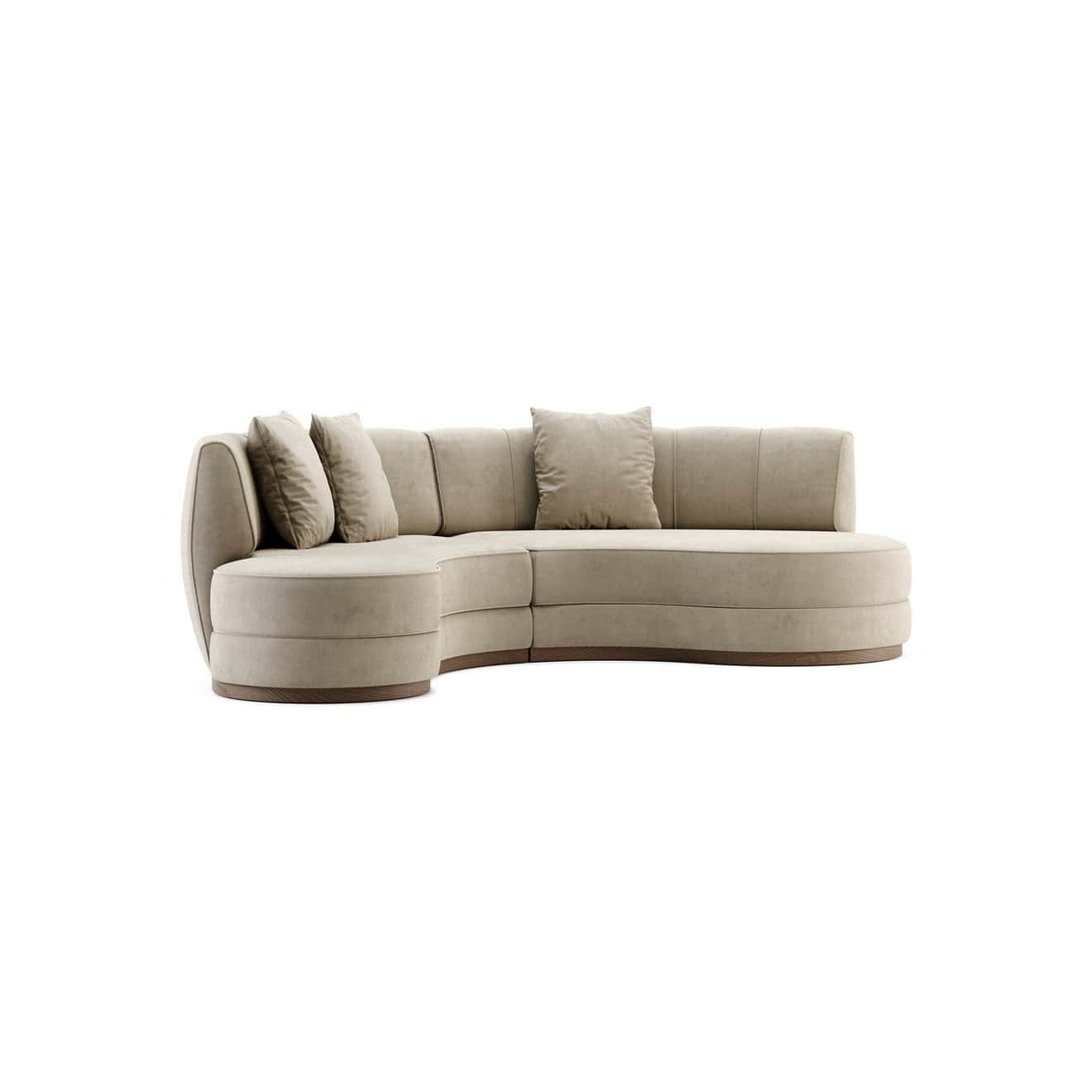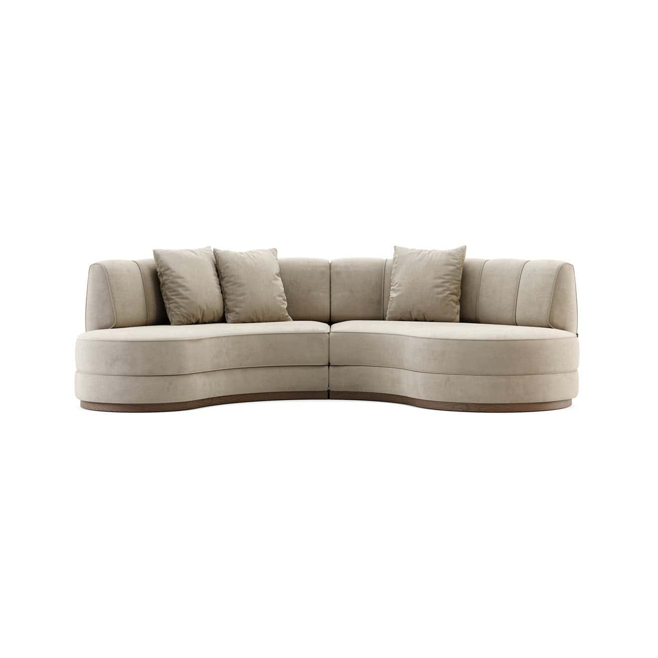 An exclusive design for the most unique decorations! The Stella sofa is a curved sofa with a deep convex backrest. Resting on a wooden base, this piece features a delicate profile from top to bottom of this back for greater illusion. This design allows you to welcome your guests even if you have little space.Enveloping lines and generous proportions characterize the Stella sofa without sacrificing ergonomic function.Standard dimensionsW2930 x D1570 x H840 x SH400 mmMaterials depictedFabric Structure: Aldan 2928Fabric Profile: Aldan 2928Base: Walnut Stained Ash Click here and discover all the finishes available in CATEGORY 1 During payment, write the color code of your choice in the "notes" field! (the color codes are indicated in the scrolling images)Did you know that an architect is available to give you real-time advice? Send us a photo of your space to furnish! Whatsapp 3477272594