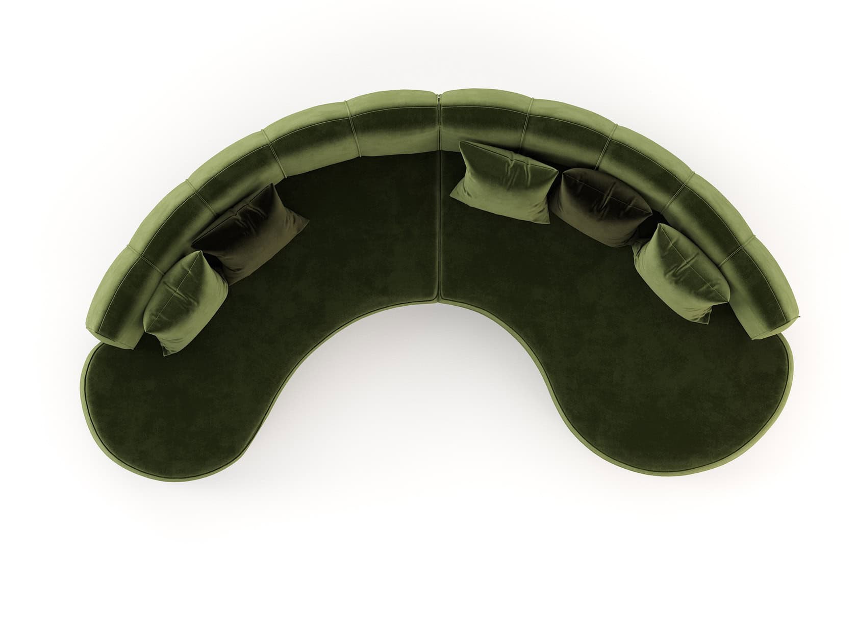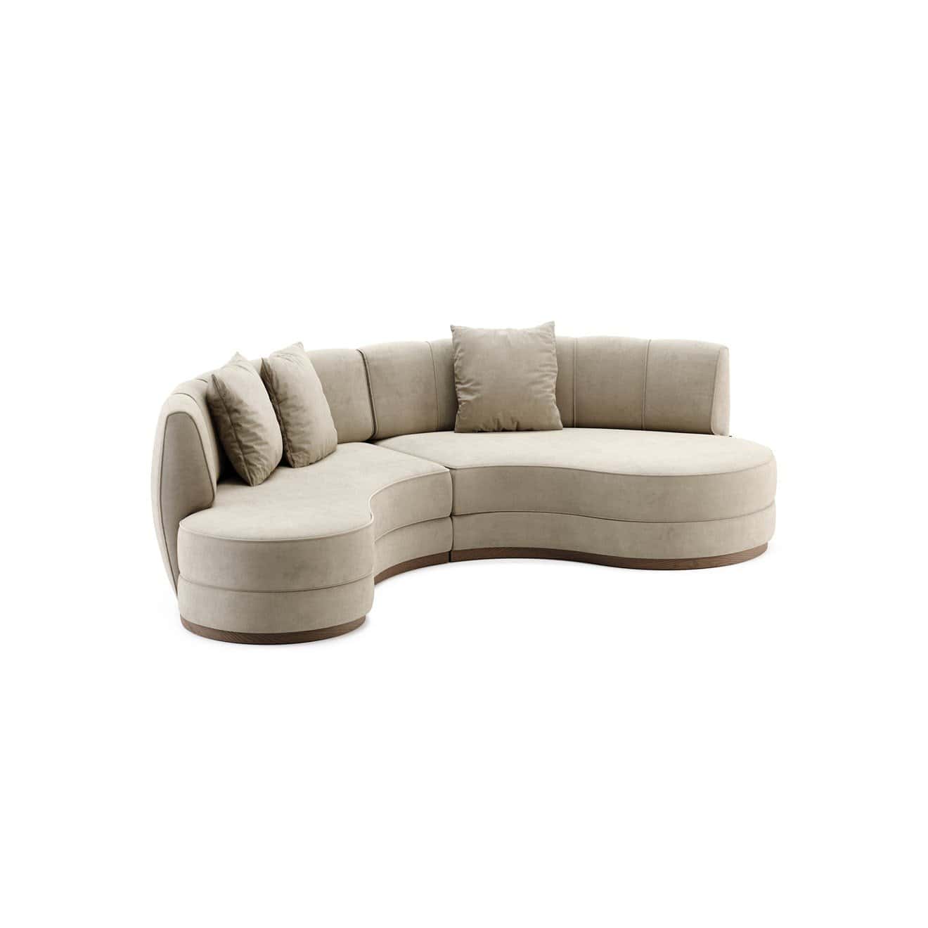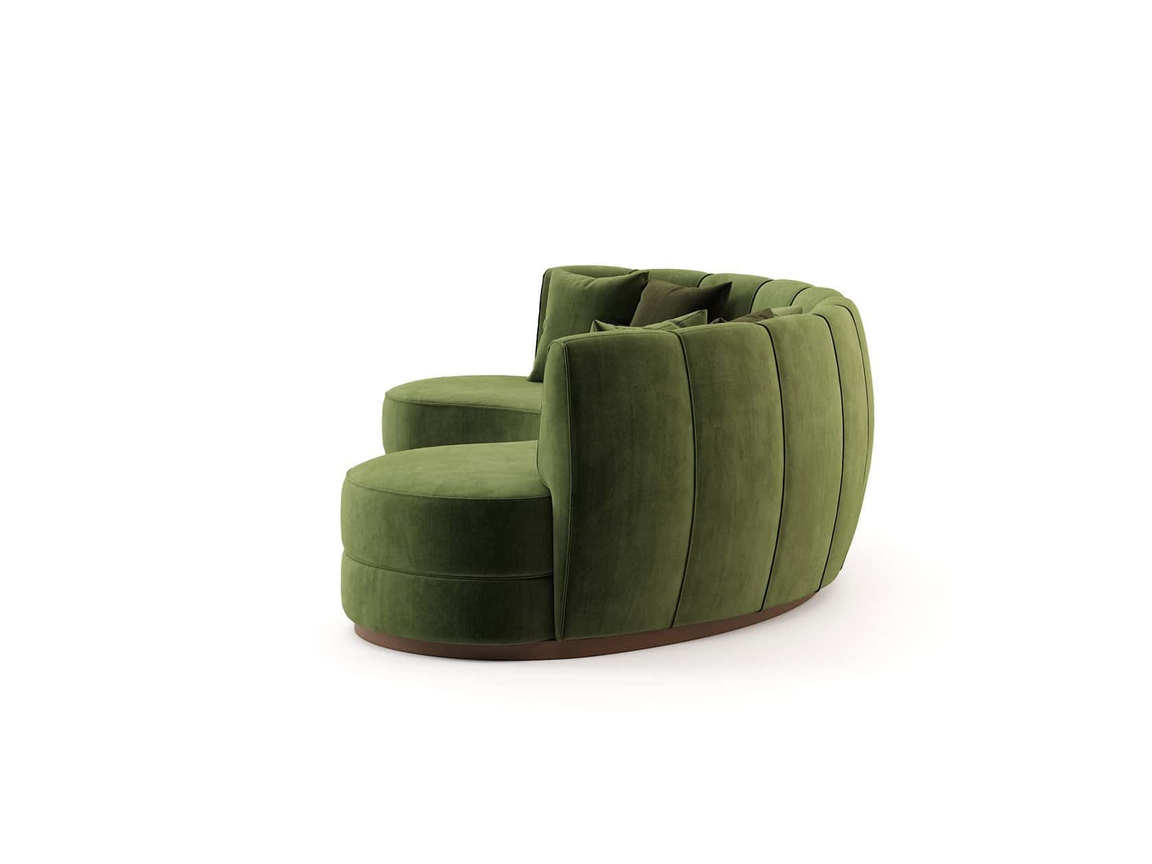 An exclusive design for the most unique decorations! The Stella sofa is a curved sofa with a deep convex backrest. Resting on a wooden base, this piece features a delicate profile from top to bottom of this back for greater illusion. This design allows you to welcome your guests even if you have little space.Enveloping lines and generous proportions characterize the Stella sofa without sacrificing ergonomic function.Standard dimensionsW2930 x D1570 x H840 x SH400 mmMaterials depictedFabric Structure: Aldan 2928Fabric Profile: Aldan 2928Base: Walnut Stained Ash Click here and discover all the finishes available in CATEGORY 1 During payment, write the color code of your choice in the "notes" field! (the color codes are indicated in the scrolling images)Did you know that an architect is available to give you real-time advice? Send us a photo of your space to furnish! Whatsapp 3477272594