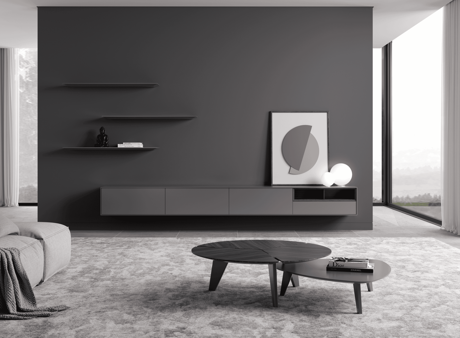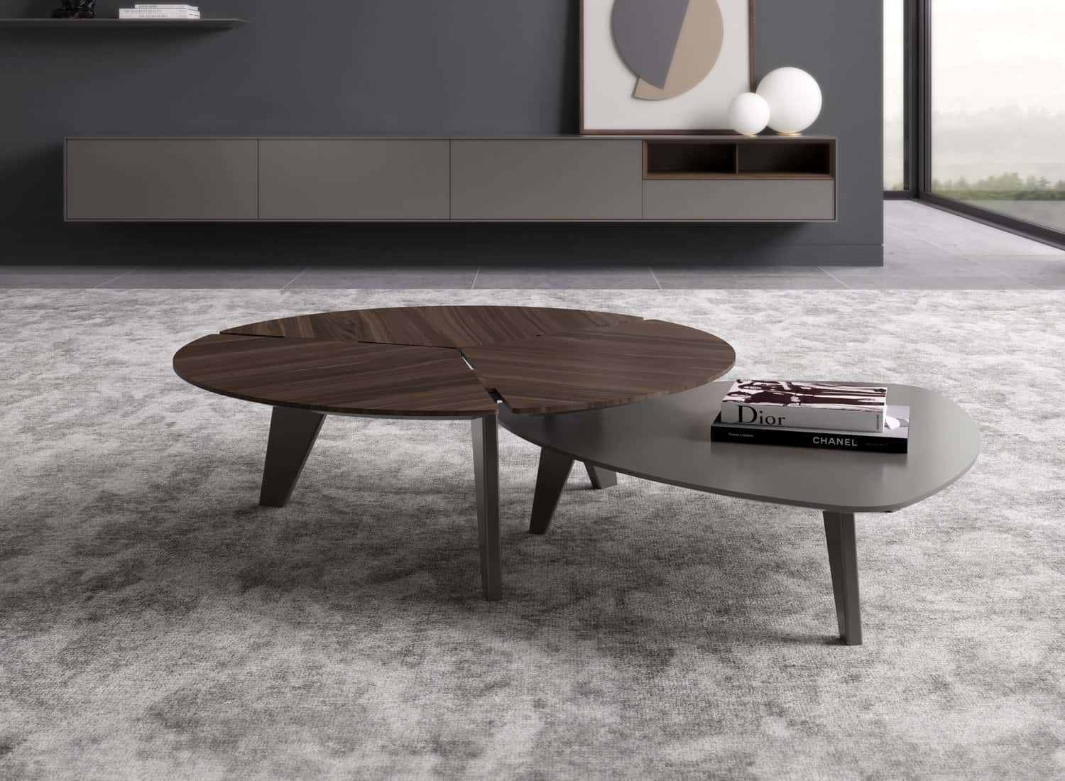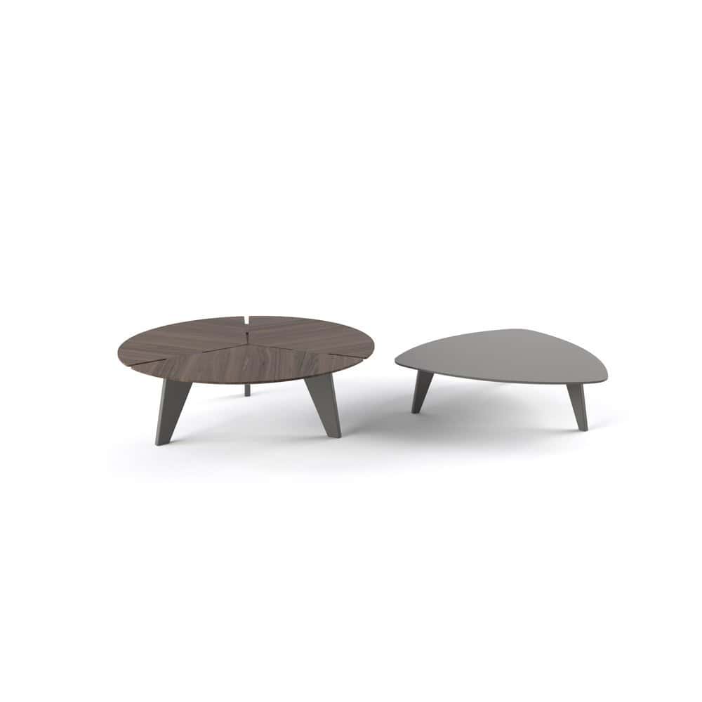 TREVO coffee tables in veneered wood and matt grey lacquer
