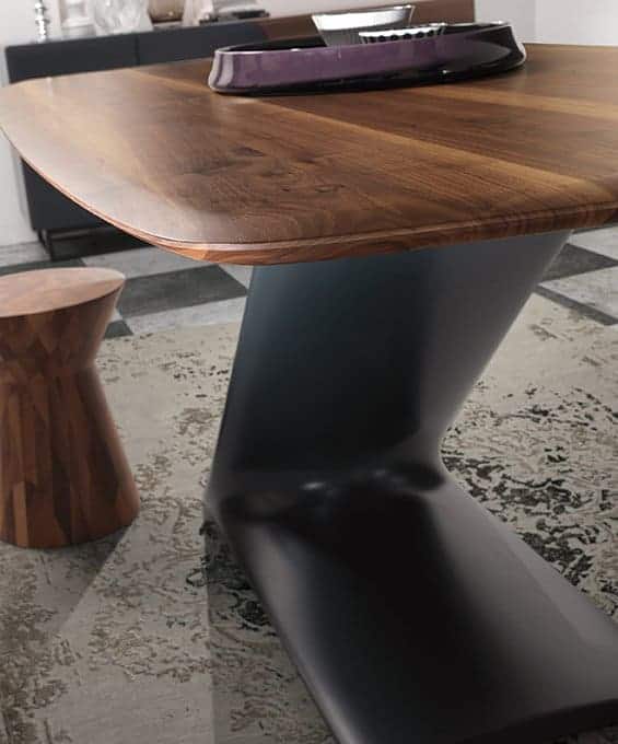 ZETA by Oliver B. Group is a rectangular dining table with rounded corners made to measure with a top in solid walnut, dark ash, ash grey wood and a polyurethane base in the following variants: glossy black, glossy white, brushed steel, brushed bronze.
