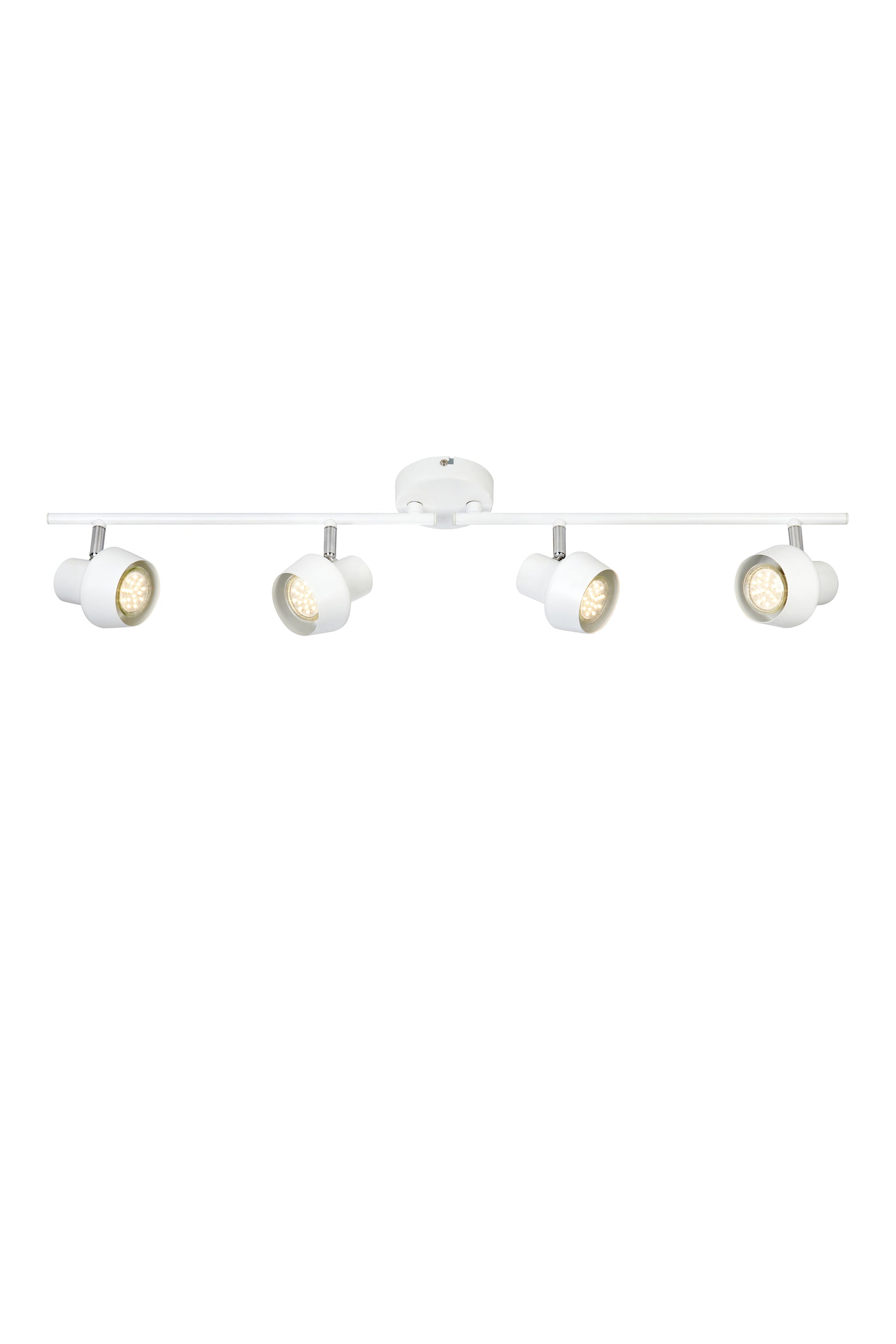 Lampada da soffitto Urn in metallo di Markslöjd. Faretti orientabili con bracci orientabili. Portalampada GU10 per max. Alogena da 35W o equivalente a LED. Collegamento a terra. Montaggio con staffa a soffitto. Sorgenti luminose non incluse