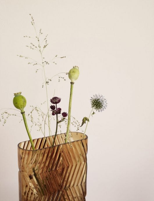 Modern vase from the Danish interior brand Hübsch. This beautiful amber vase from Hübsch is made of glass.
