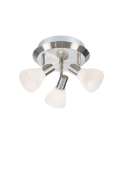 Vero è un classico faretto a tre bracci con tre bracci snodabili per direzionare la luce dove vuoi tu. Vero ha tre bellissimi globi di vetro opalino ed è disponibile in acciaio e anticato.