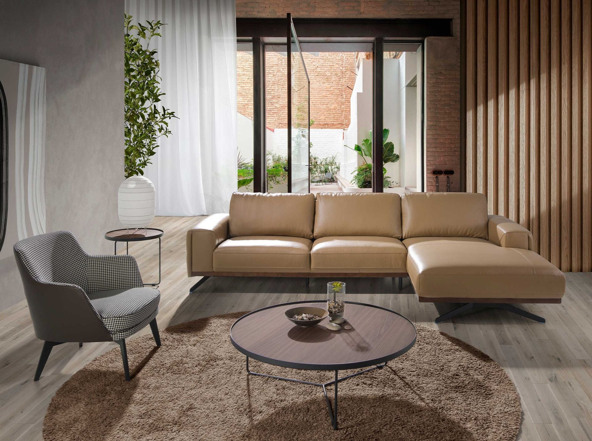 Tavolo angolare rotondo in noce e acciaio nero model 2028 Angel Cerdá S.L.