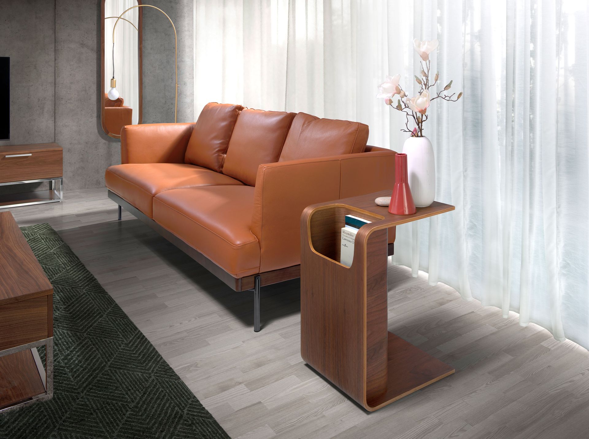 Tavolo angolare rettangolare dal design moderno in legno impiallacciato noce naturale. Un pezzo dal design semplice ma originale che aggiungerà un tocco unico e personale.