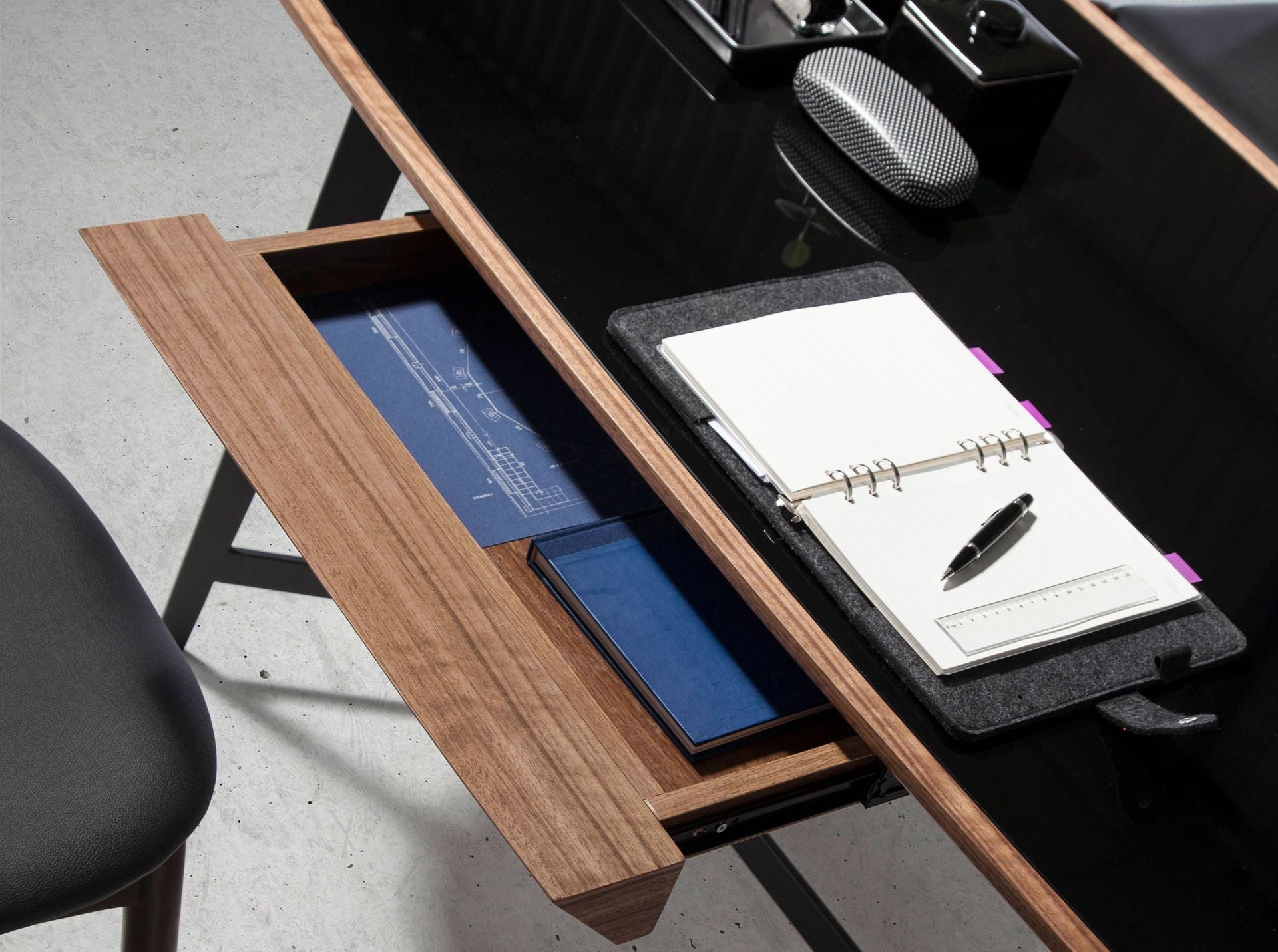Scrivania in noce e acciaio nero con piano in vetro nero model 3137 Angel Cerdá S.L.