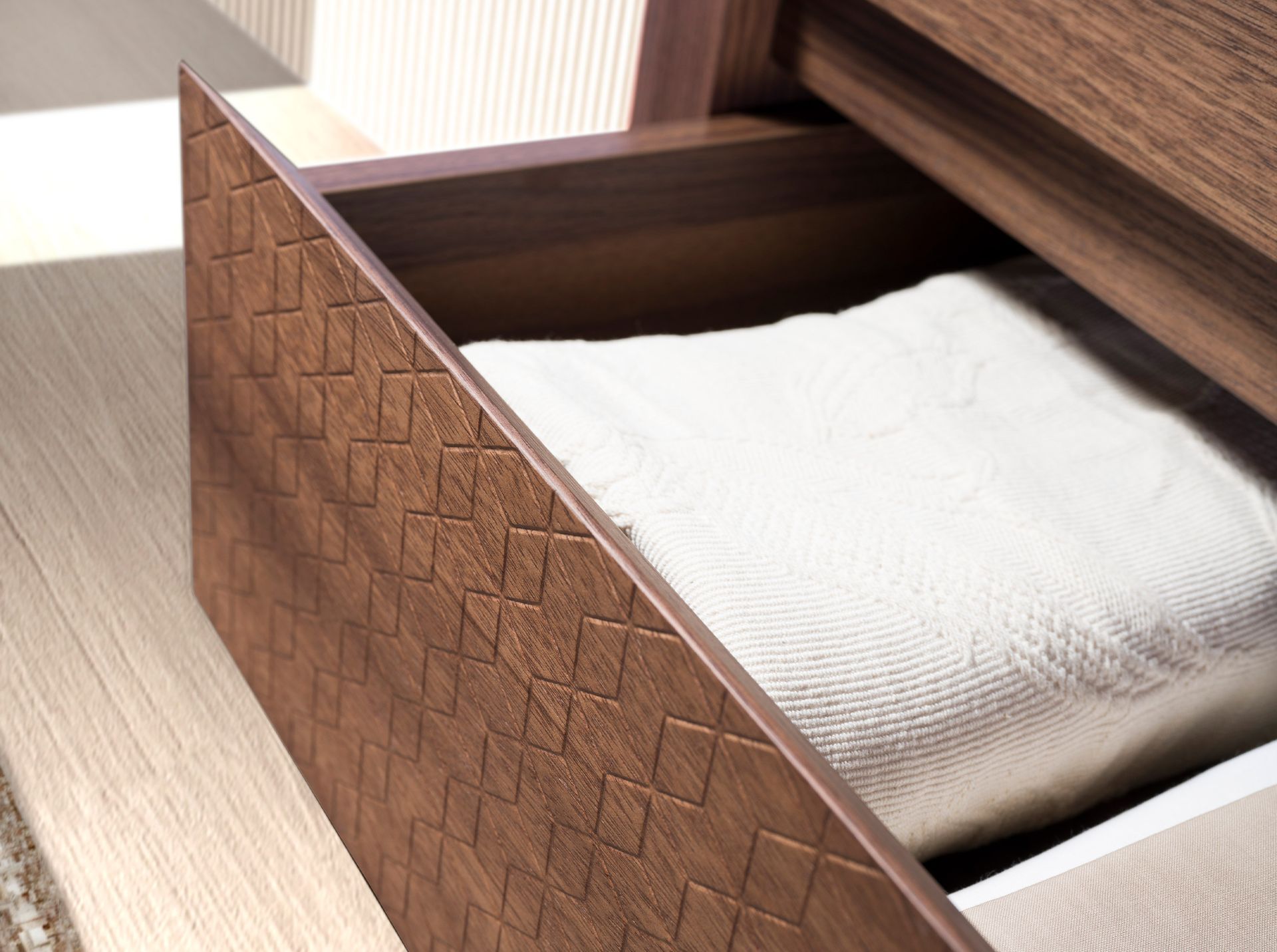 Chiffoniera in noce e acciaio scuro metallizzato con piano in marmo porcellanato model 7153 Angel Cerdá S.L.