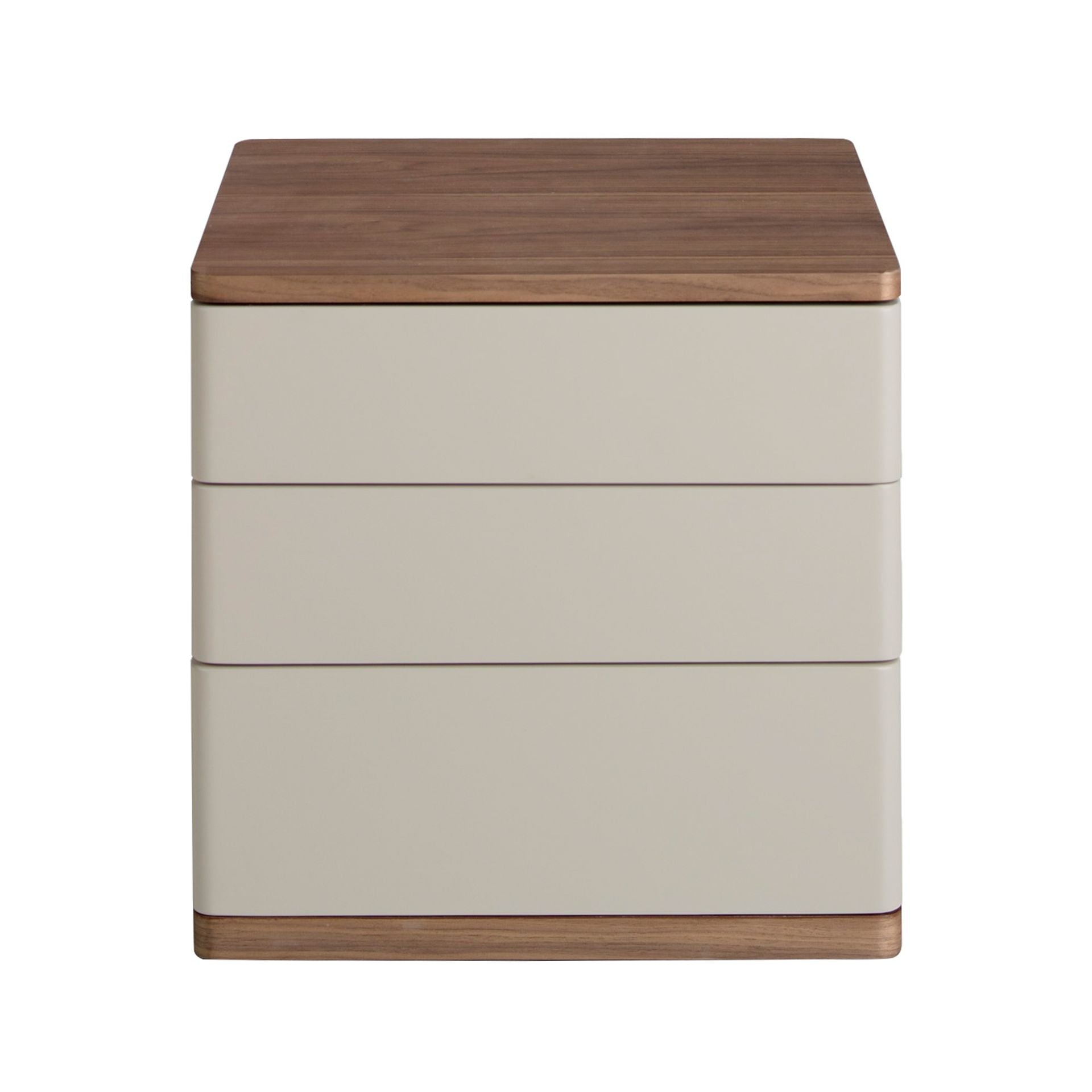 Comodino dal design moderno con struttura in MDF grigio e base originale in legno impiallacciato noce. Grazie all'elegante piano in legno impiallacciato noce naturale, otterrete il look sofisticato che cercate nelle vostre stanze. Dispone di un ampio spazio di archiviazione con 3 cassetti con chiusura ammortizzata.