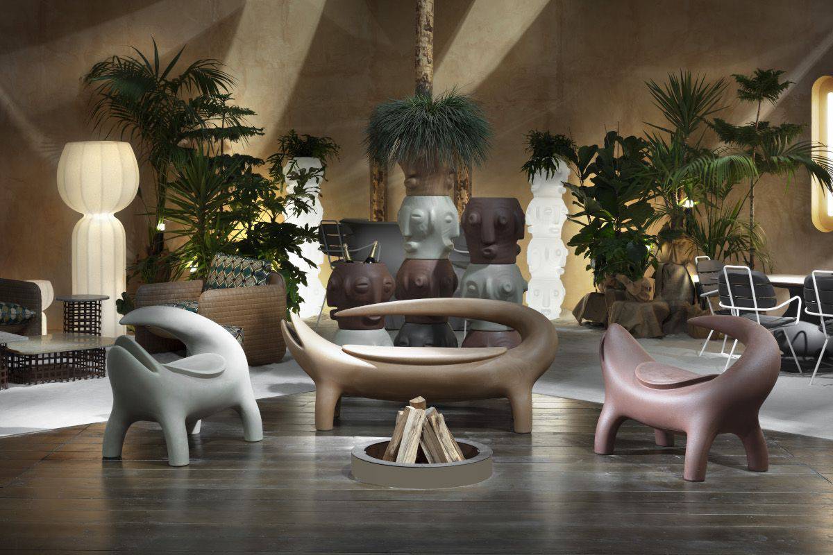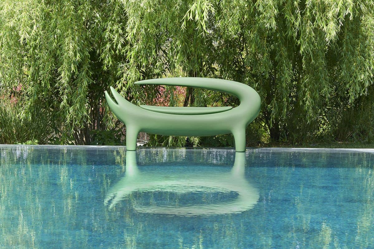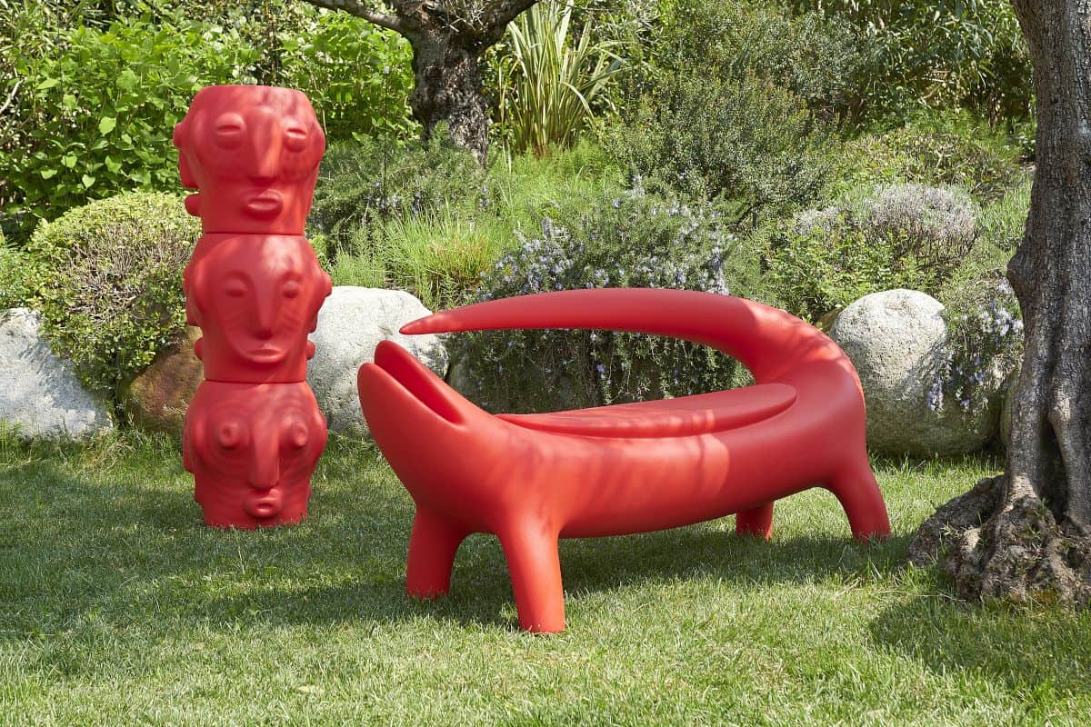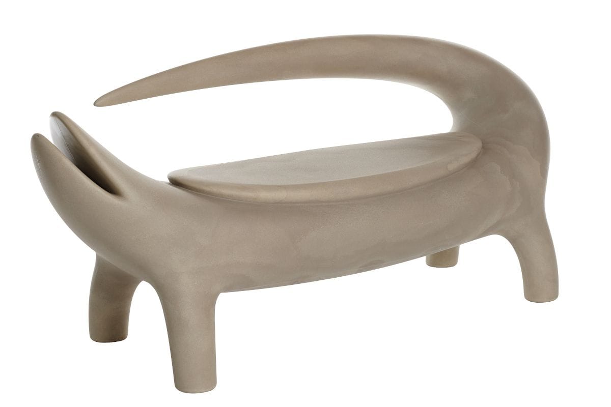 Marcantonio transforme l'un des animaux les plus iconographiques en un compagnon idéal pour se détendre en plein air. Big Kroko est un canapé lounge qui, avec ses lignes arrondies, ajoute de l'ironie aux espaces qu'il occupe. Une œuvre industrielle qui fait un clin d’œil à la sculpture, avec des références à la Nature et à l’art contemporain, dont la forme n’est qu’esquissée mais indubitable. Big Kroko est réalisé avec un bioplastique issu du raffinage de la canne à sucre, qui rappelle les couleurs de la Terre et que SLIDE utilise pour la première fois dans le monde du design. Big Kroko est également disponible dans la version fauteuil une place, Kroko, et forme avec Threebù la collection Afrika.