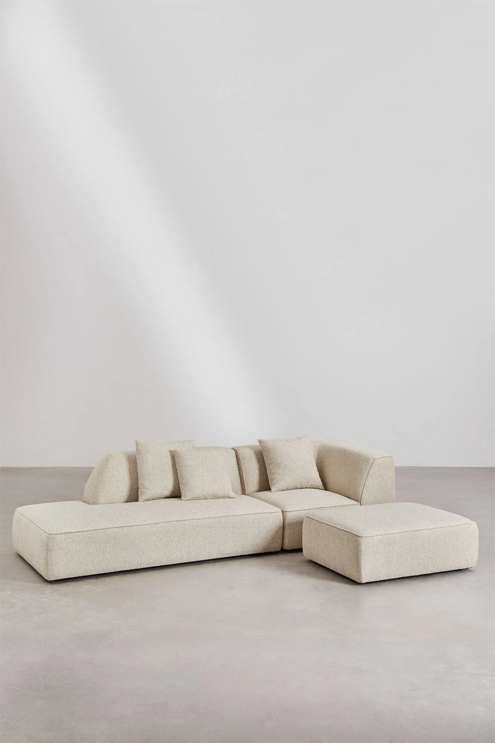 Divano angolare componibile Cardea 2 pezzi con chaise longue destra o sinistra e pouf imbottito - Sfoderabile Bouclè beige Crema