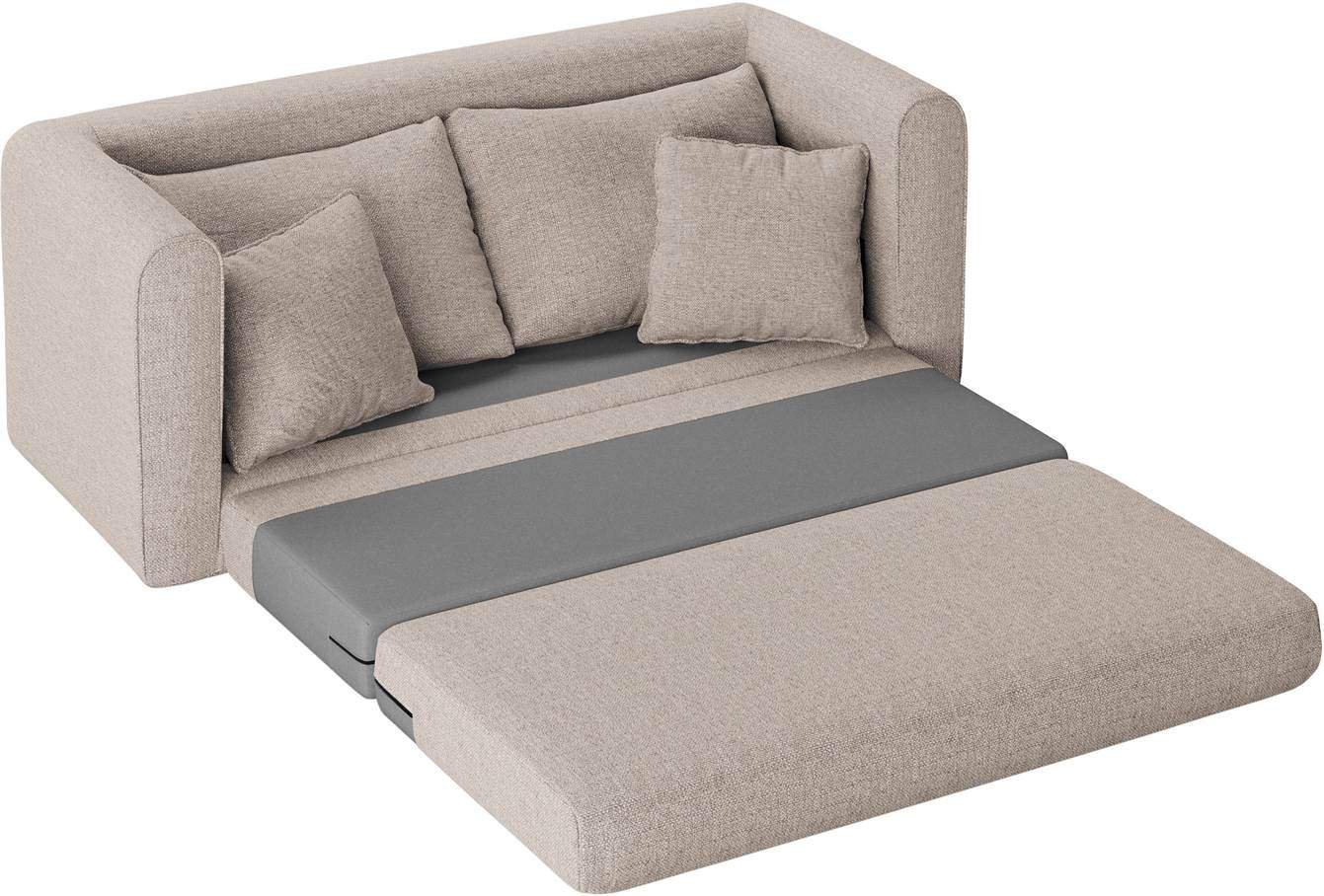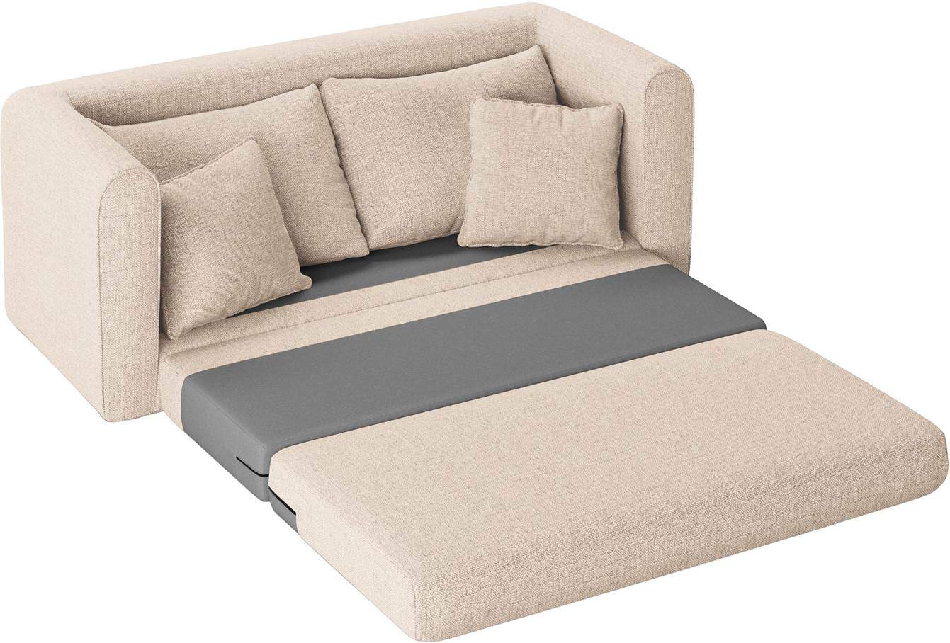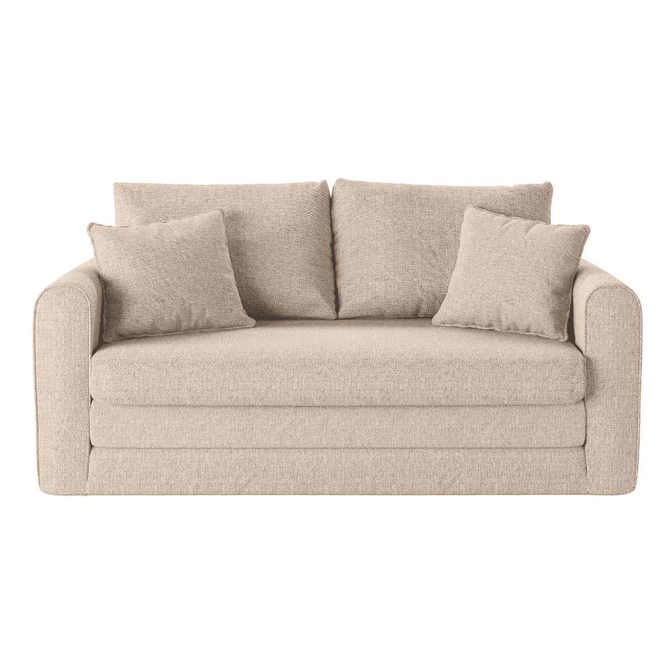 Canapé convertible 2 places avec 2 coussins décoratifs Crée une surface de 128 x 195 cm Charge maximale : 300 kg Le canapé est livré à plat - peut être utilisé immédiatement après le montage des pieds et des accoudoirs Fabriqué en Europe.