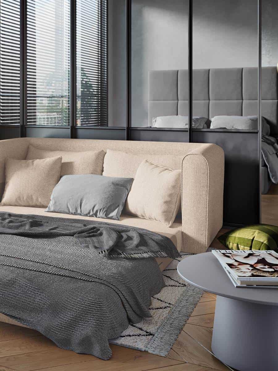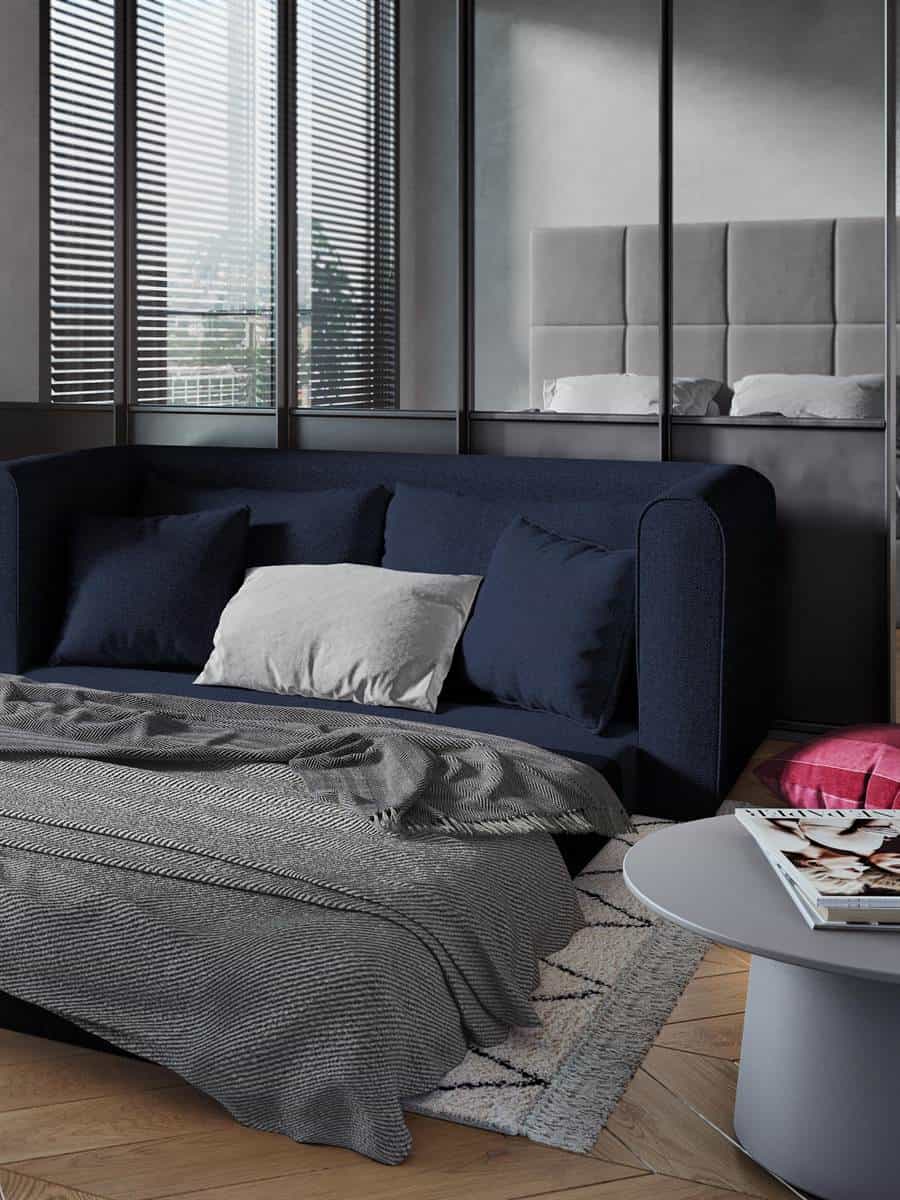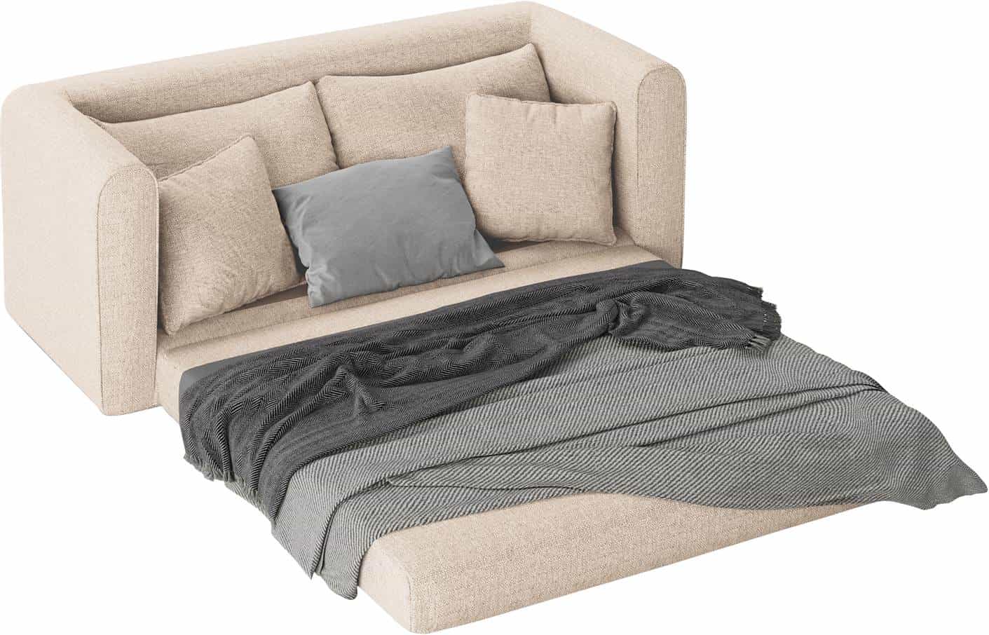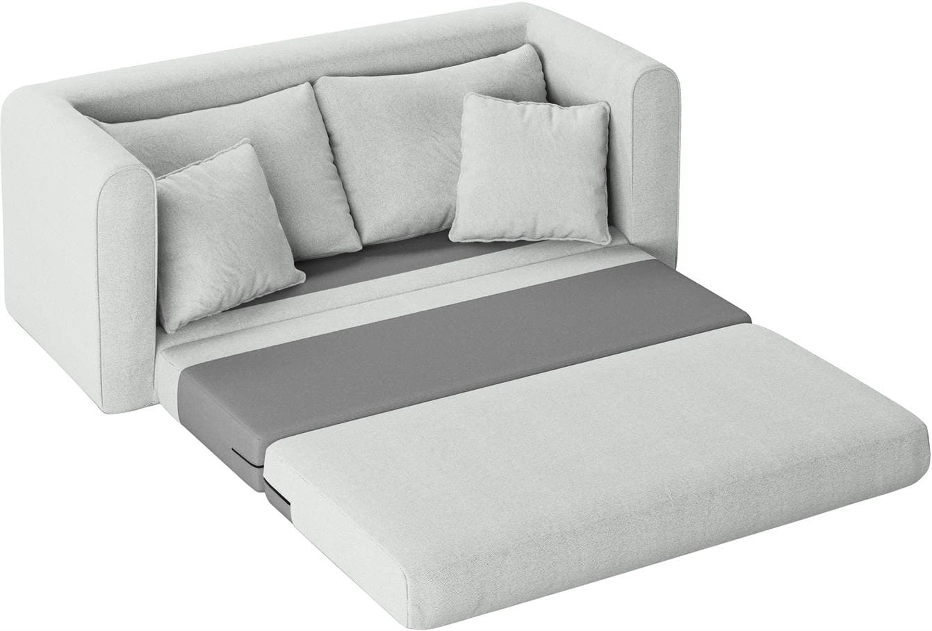 Canapé convertible 2 places avec 2 coussins décoratifs Crée une surface de 128 x 195 cm Charge maximale : 300 kg Le canapé est livré à plat - peut être utilisé immédiatement après le montage des pieds et des accoudoirs Fabriqué en Europe.