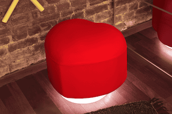 Lempi est un pouf à la forme romantique et à l'âme pop : il naît de l'union insolite entre un grand coussin en forme de cœur en polyuréthane souple, recouvert d'un tissu élastique rouge, et une base en polyéthylène, rendue lumineuse grâce à la LED sans fil.