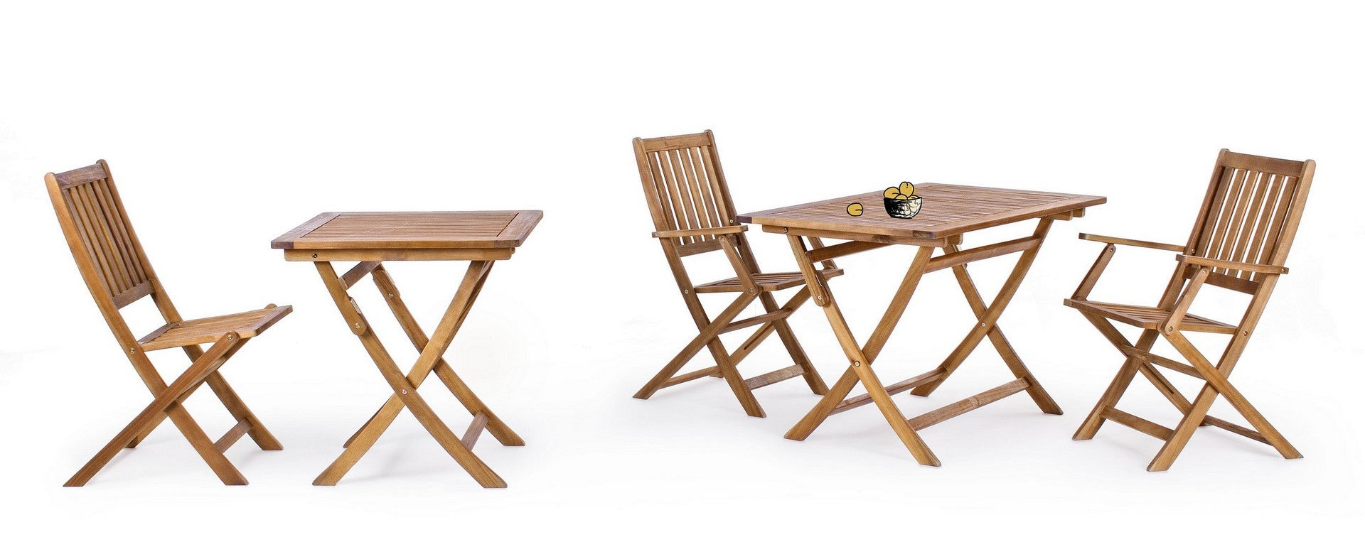 Legno di acacia, finitura ad olio, viteria in acciaio galvanizzato, pieghevole