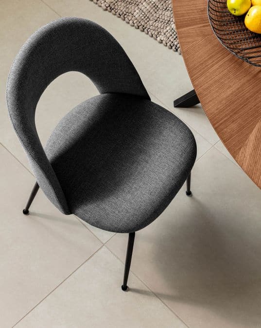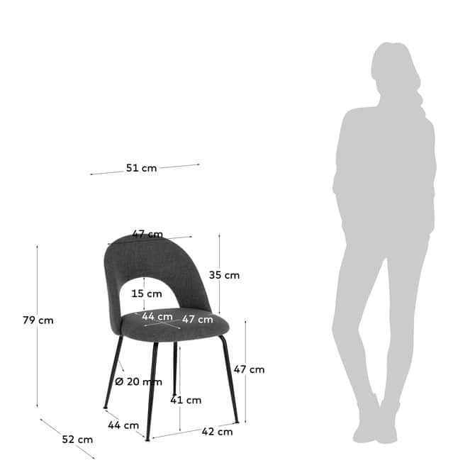 Chaise de la collection VIDA, avec un revêtement gris foncé qui rend la vie plus confortable, même sans s'asseoir. Vous avez renversé du café ou du vin ? Pas de problème ! En plus d'être facile à nettoyer, le tissu résiste aux liquides, sans les laisser tomber.Vous voulez connaître le meilleur ? Vous ferez une faveur à l'environnement, car vous n'aurez besoin que d'un peu d'eau pour le garder propre, sans avoir besoin d'autres produits de nettoyage. Dimensions :