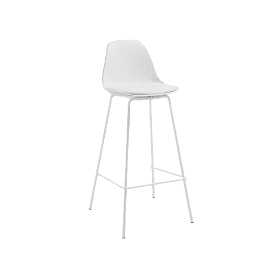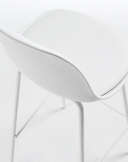 Avec le tabouret Bright de 65 cm de hauteur vous pourrez être à l'aise grâce à son assise avec dossier. De plus, avec le revêtement en similicuir blanc, il ajoute plus de lumière à votre cuisine. Et, pour encore plus de confort, il dispose également d'un repose-pieds intégré à la structure, en acier peint blanc mat. Ne vous inquiétez pas pour votre sol, car chaque pied est doté d'un protecteur en plastique pour éviter les rayures. Tous les avantages !