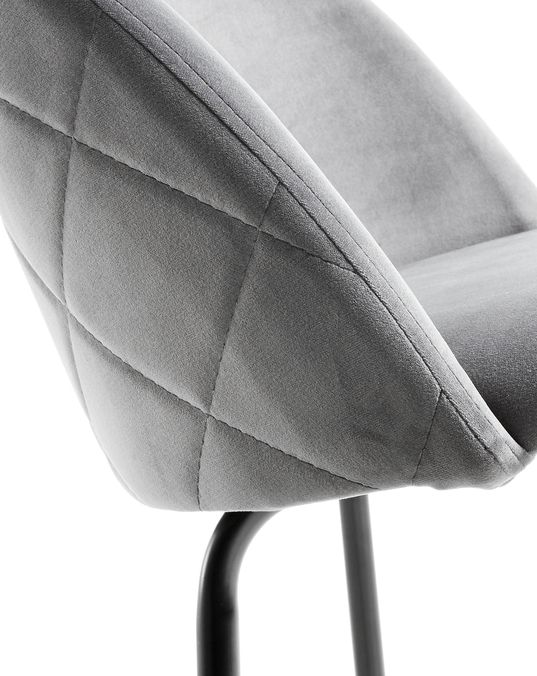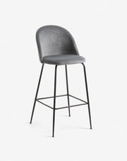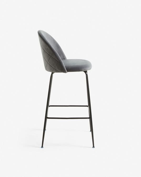 Tabouret MISS en velours gris, hauteur d'assise 76cm