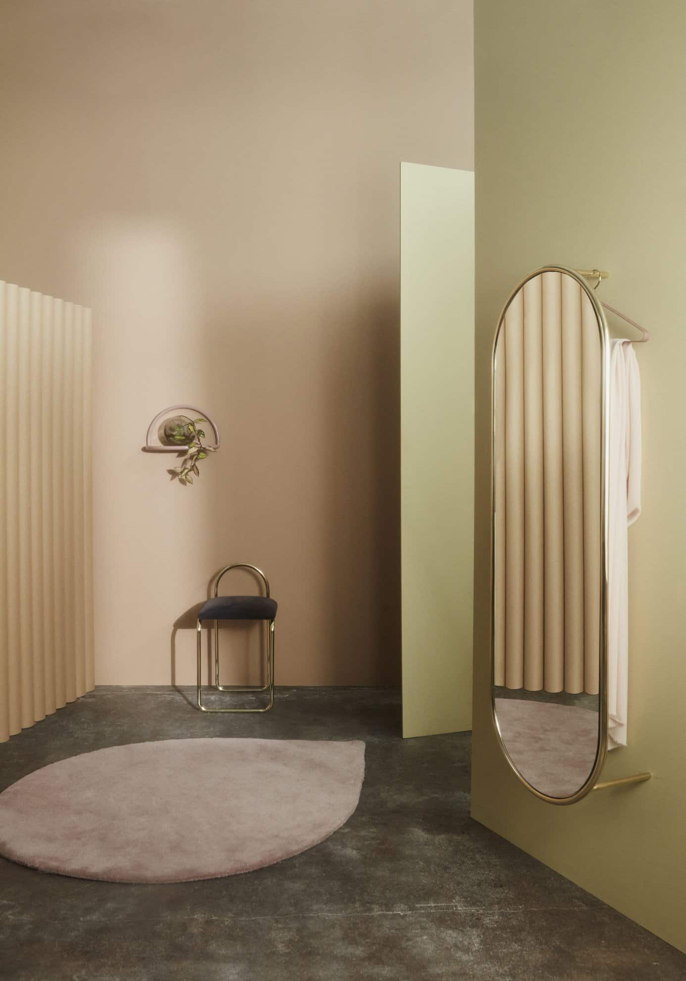 Le miroir de garde-robe ANGUI a la même esthétique et les mêmes dimensions que nos miroirs ANGUI plus petits – il est juste plus grand. Beaucoup plus grand. De plus, il dispose d'un cintre attaché à l'arrière pour vos cintres. C'est si discret, mais si fonctionnel.