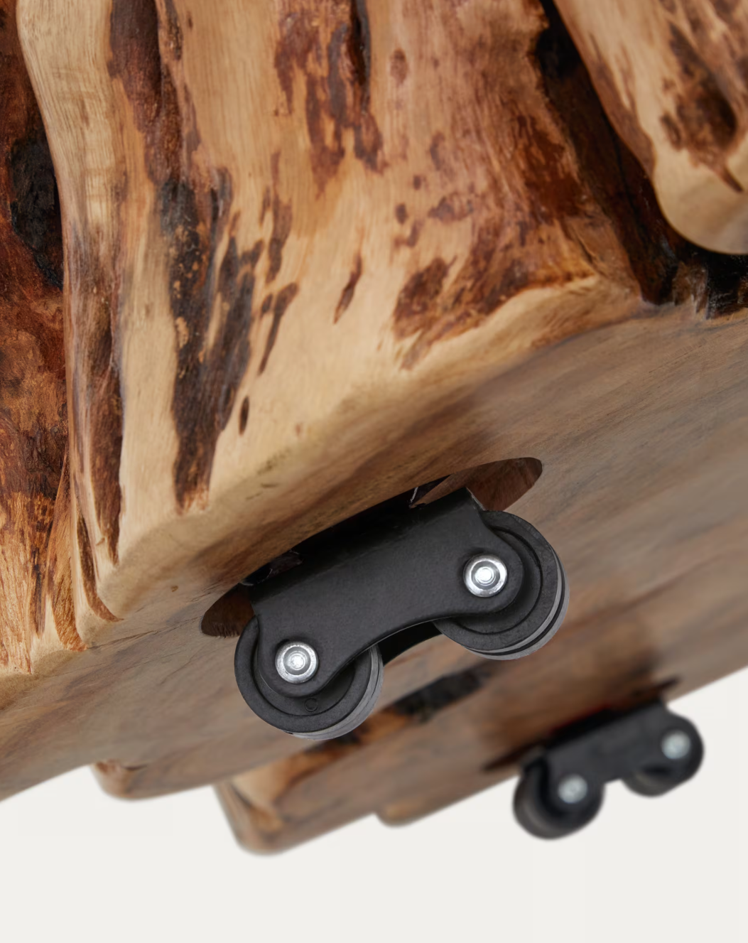 - Tavolino realizzato con un pezzo di legno massiccio di acacia dalle forme irregolari.