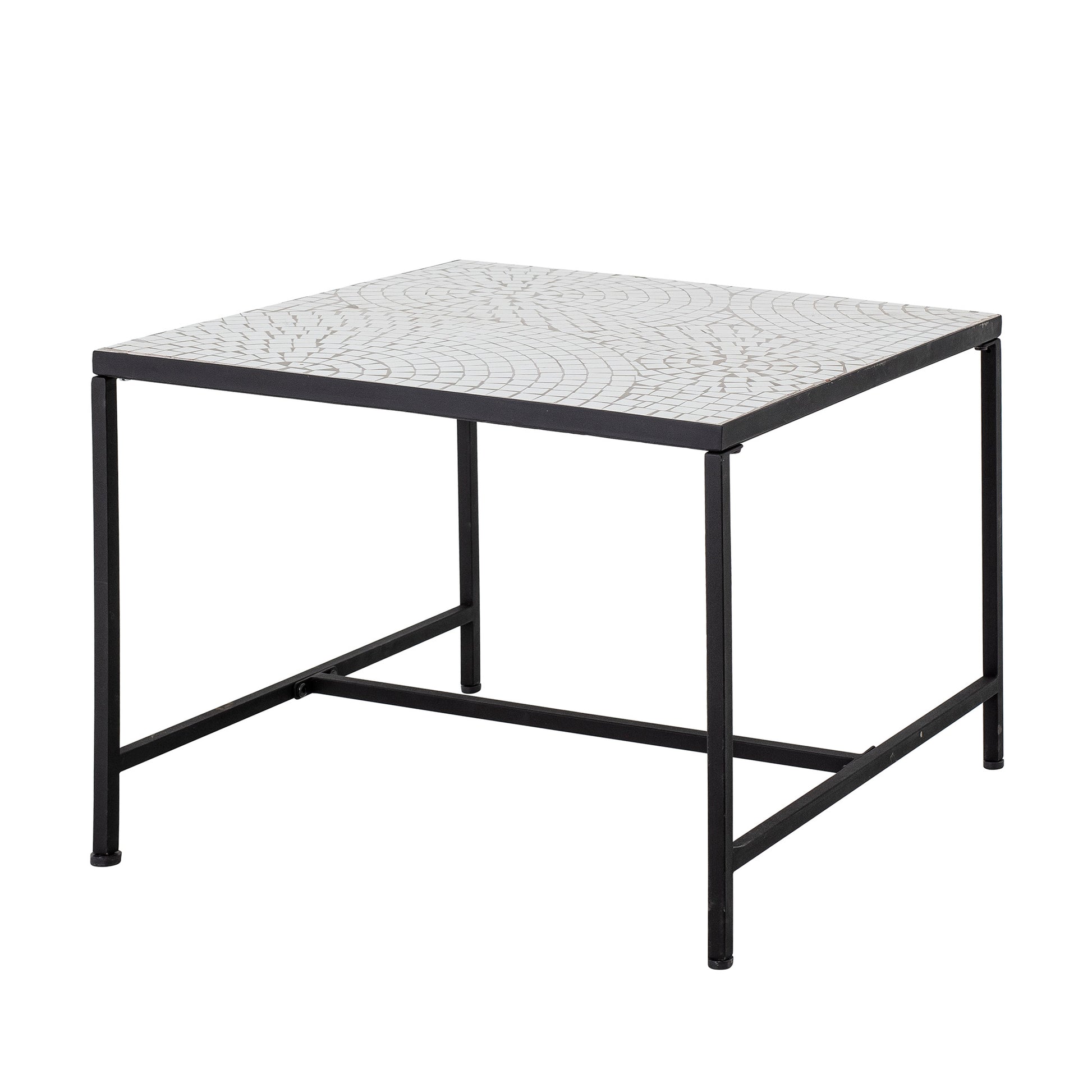 Il tavolino Niah di Bloomingville è un tavolino minimalista ed elegante. Il tavolo è realizzato in metallo con piano in pietra e ceramica bianca. Il tavolino presenta un bel design bianco sporco sulle piastrelle del piano, che contrasta perfettamente con la leggerezza della struttura.