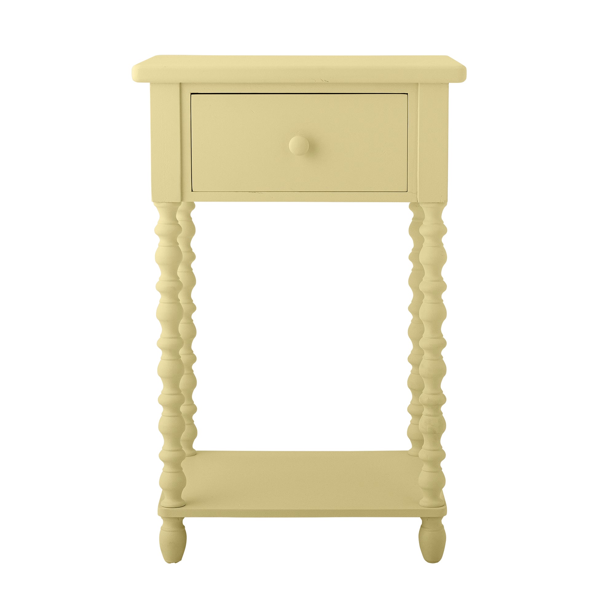 Il tavolino Salino di Bloomingville è un complemento d'arredo affascinante e delicato che si adatta bene a qualsiasi stanza. Il tavolo è dotato di un pratico cassetto ed è realizzato in legno di pino dalla tenue tonalità giallo pastello. La superficie liscia e le gambe dettagliate conferiscono al tavolo un aspetto elegante. È ideale per il posizionamento in camera da letto, nella cameretta dei bambini o in soggiorno.