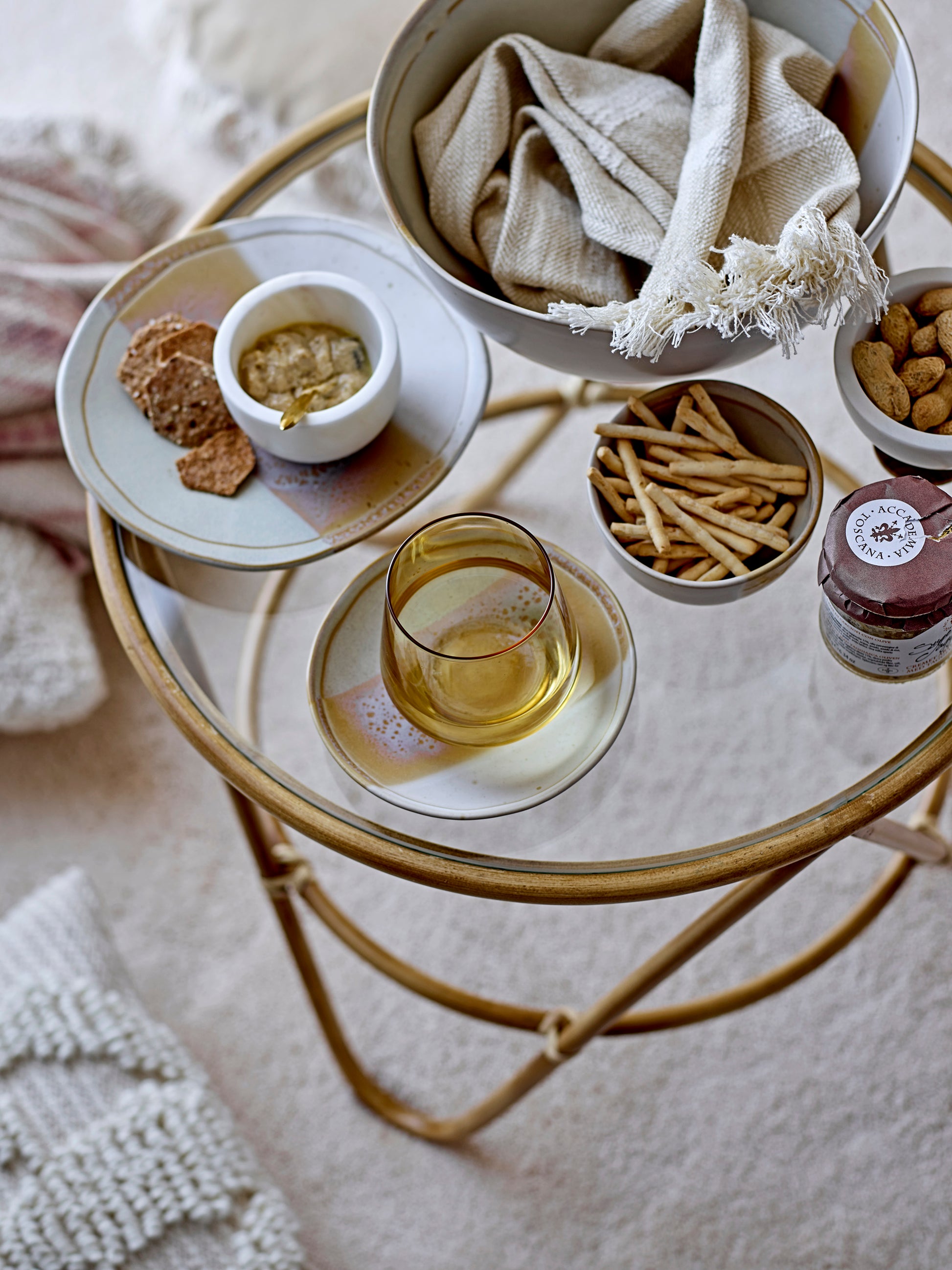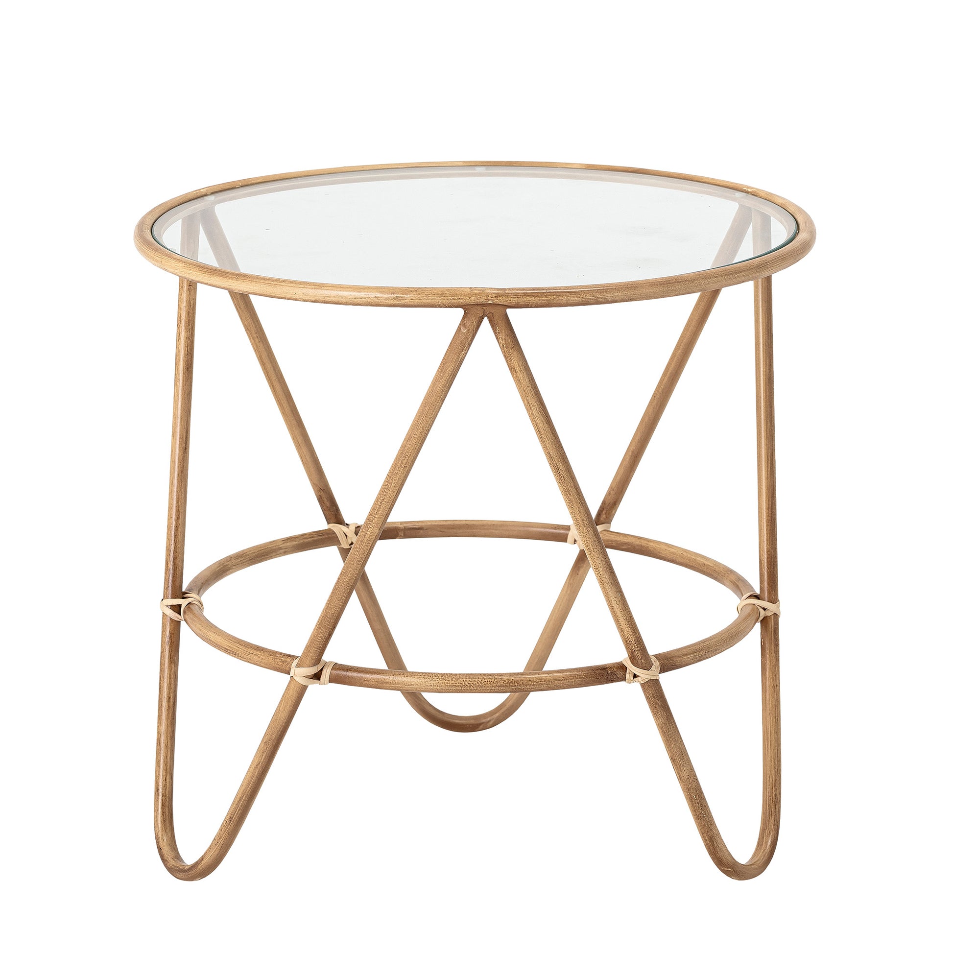 Tavolino con piano in vetro per un look fresco e grezzo.